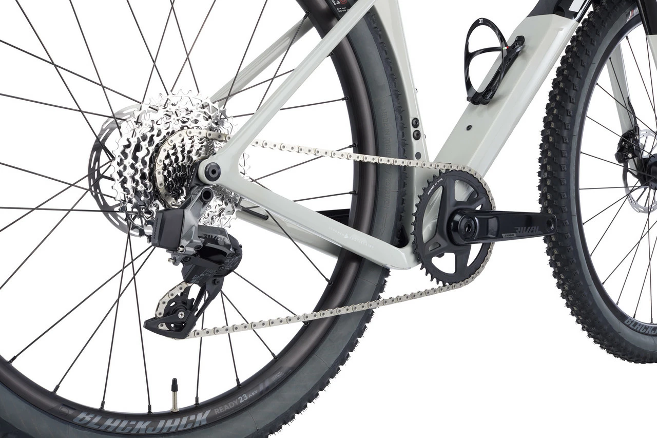 Der Carbonrahmen verfügt über ein besonders schlankes Steuerrohr, das jedoch die Gabel mit einem stabilen 1,5-Zoll-Gabelschaft fasst. Gleichzeitig ist die Gabel mit einer reduzierten Gabelkrone für bessere Aerodynamik versehen. Die abgesenkten Kettenstreben bieten Platz für breite Gravelreifen. Die windschnittige Checkpoint-Charlie-Sattelstütze besteht wie der Lenker aus Carbon und wird mit einer innen liegenden, selbstausrichtenden Sattelklemme befestigt. Für widrige Bedingungen findest Du Möglichkeiten zur Schutzblechbefestigung, sodass Du Dich bei Bedarf für Spritzwasser oder Matsch rüsten kannst.