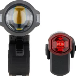 Spezifikationen Frontlicht:Ausführung:Frontlicht (weiß)Montage:LenkerLeuchtmittel:1 LEDLeuchtkraft:10 Lux, 20 LuxLeuchtdauer:6 Stunden (20 Lux), 12 Stunden (10 Lux)Leuchtweite:40 mBetriebsmittel:Akku (Li-Ion), integriertTechnische Daten Frontlicht:Leuchtmodi:2 Modi (Stand 1, Stand 2)Ladestandsanzeige:Ja (Batterie schwach)Ladezeit:2,5 StundenMaße (H x B x T):80 x 40 x 60 mmMaterial:KunststoffSchalter:Ein / AusFreigaben Frontlicht:Zulassung im Straßenverkehr:Ja, für Fahrräder nach §67 StVZOPrüfziffer:K~~1582Spezifikationen Rücklicht:Ausführung:Rücklicht (rot)Montage:Sattelstütze, HinterbaustrebenLeuchtmittel:1 LEDLeuchtdauer:10 StundenBetriebsmittel:Akku (Li-Ion), integriertTechnische Daten Rücklicht:Leuchtmodi:1 ModusLadestandsanzeige:Ja (Batterie schwach)Ladezeit:2 StundenMaße (H x B x T):35 x 33 x 46 mmMaterial:KunststoffSchalter:Ein / AusFreigaben Rücklicht:Zulassung im Straßenverkehr:Ja, für Fahrräder nach §67 StVZOPrüfziffer:K~~1584Kompatibilität:Frontlicht: