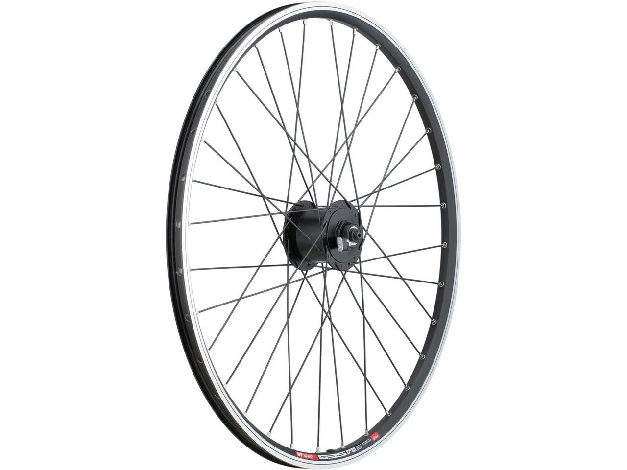 bc basic 26″ Laufrad mit DT Swiss 535 Felge, Shimano T3000 Naben (oder Nabendynamo) und DT Swiss Factory Speichen.