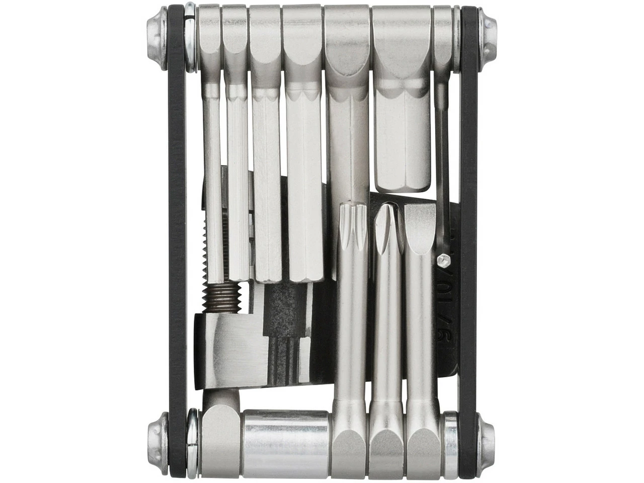 Technische Daten:Material Körper:AluminiumMaterial Werkzeug:Chrom-VanadiumGröße (L x B x H):6,9 x 5 x 1,6 cmFunktionen:15Funktionen:SchlitzschraubendreherKreuzschlitzschraubendreherInnensechskant: 2 mm, 2,5 mm, 3 mm, 4 mm, 5 mm, 6 mm und 8 mmTorx: T25Speichenschlüssel: 3,2, 4,3, 4,4, MavicKettennieter (8-/9-/10-/11-fach)Technologie:Aluminium Konstruktion:Aluminium ist stabil, leicht und perfekt für dauerhafte Konstruktionen.