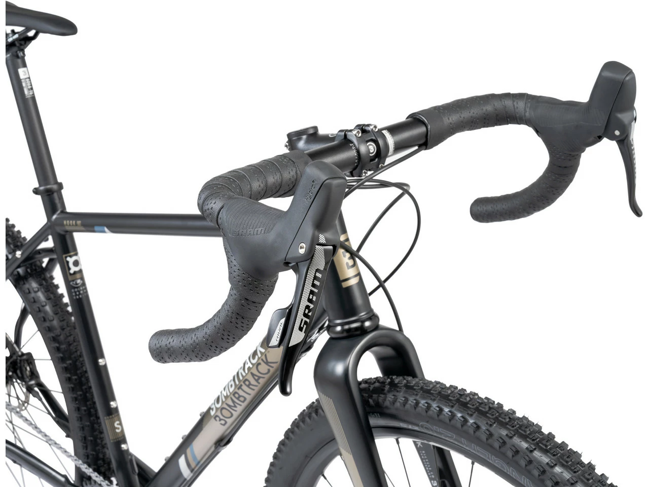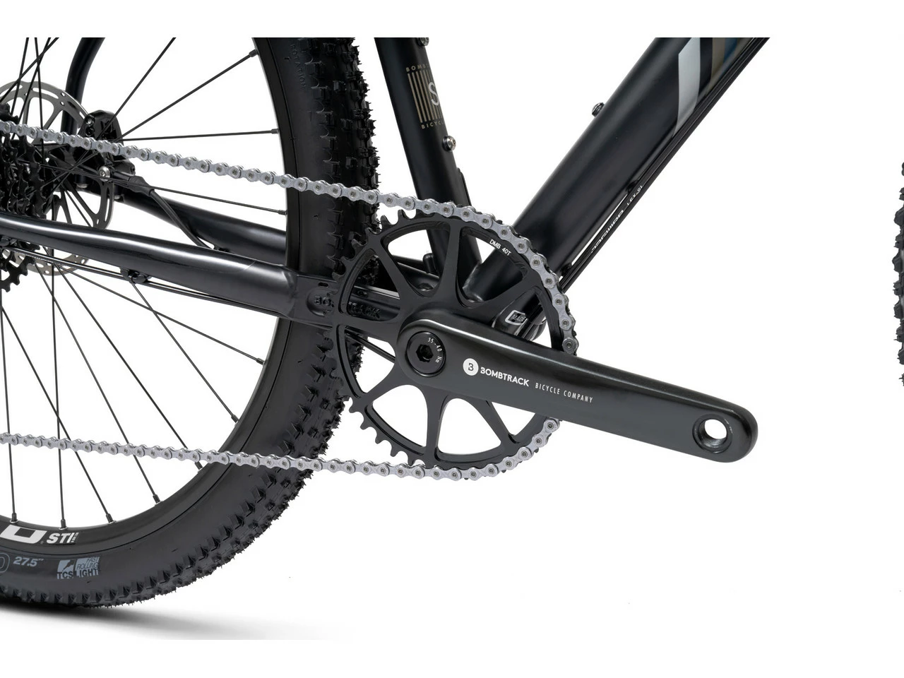 Spezifikationen:Einsatzbereich:GravelLaufradgröße:27,5″ (650B)Größen:XS, S, M, L, XLMaterial Rahmen:Stahl (CrMo)Material Gabel:CarbonKomponenten:Rahmen:Columbus Cromor / konifiziertGabel:Bombtrack EXT V2Vorbau:Bombtrack Roam / Aluminium, -7°Lenker:Bombtrack CX-10 / 31,8 mm / 10° FlareSteuersatz:EC34/28,6|EC44/40 / 1,5″ – 1 1/8″ / External Cup / gedichtetSattelstütze:Bombtrack Yew / Aluminium, 27,2 x 300 mmSattel:Bombtrack CompKurbel:Bombtrack Lyer / Aluminium, 40 Zähne / Direct MountPedale:ohneBremsen:SRAM Rival / Flat Mount, hydraulisch, 160 mmSchalt-/Bremshebel:SRAM Rival double tap / hydraulisch / 1 x 11Schaltwerk:SRAM Rival 1 / langer KäfigKassette:SRAM PG-1130 / 11-fach, 11-42 ZähneKette:KMC XII EPT / 0,5″ x 11/128″ , 114 GliederLaufräder:VR WTB ST Light i25 32mm Felge / HR WTB ST Light i23 32 mm Felge / Bombtrack Tau Nabe, gedichtet, VR 12 x 100 mm Steckachse, HR 12 x 142 mm SteckachseReifen:VR WTB Ranger TCS Light 27,5×2″ / Tubeless ReadyFreigaben:Gewichtsbeschränkung:130 kg SystemgewichtBremsscheibengröße max.:160 mmReifengröße max.:VR 650Bx52C, 700x45C / HR 650Bx42C, 700x40CKettenblattanzahl:1-fach, 2-fachKettenblattgröße max.:44 Zähne (1-fach), 36-50 Zähne (2-fach)Features:Stahlrahmen aus konifiziertem CrMo-StahlGabel aus VollcarbonRahmen mit Befestigungsösen für Gepäckträger und SchutzblecheTriple-Cage-Ösen an der Gabelinterne Kabelführung für DynamokabelGeometrie:XS: