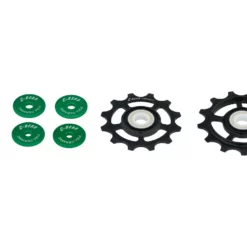 Die OCM SRAM AXS Road Schalträdchen von C-BEAR arbeiten mit Keramiklagerkugeln, die in Stahlrinnen laufen. Sie sind kompatibel mit den elektronischen Red und Force 12-fach Schaltwerken und sind größer als die Original-Schaltröllchen. Damit lässt sich die Performance Deines Antriebs deutlich erhöhen.