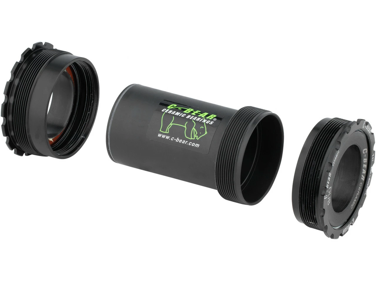 Die Lagerschalen der C-BEAR Innenlager bestehen nicht etwa aus Plastik, sondern aus CNC-präzisionsbearbeitetem Aluminium. C-BEAR hat sich schon sehr früh, nämlich schon 2011/2012, als Kunststoff-Zusätze gerade in Mode kamen, auf eine Anti-Plastik-Haltung festgelegt. Metallgehäuse bedeuten höhere Genauigkeit, geringere Toleranzen sowie das Vermeiden von Flex und Deformation.
