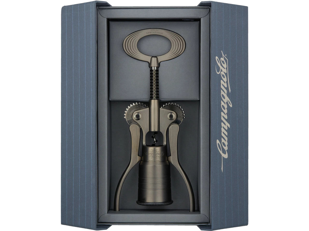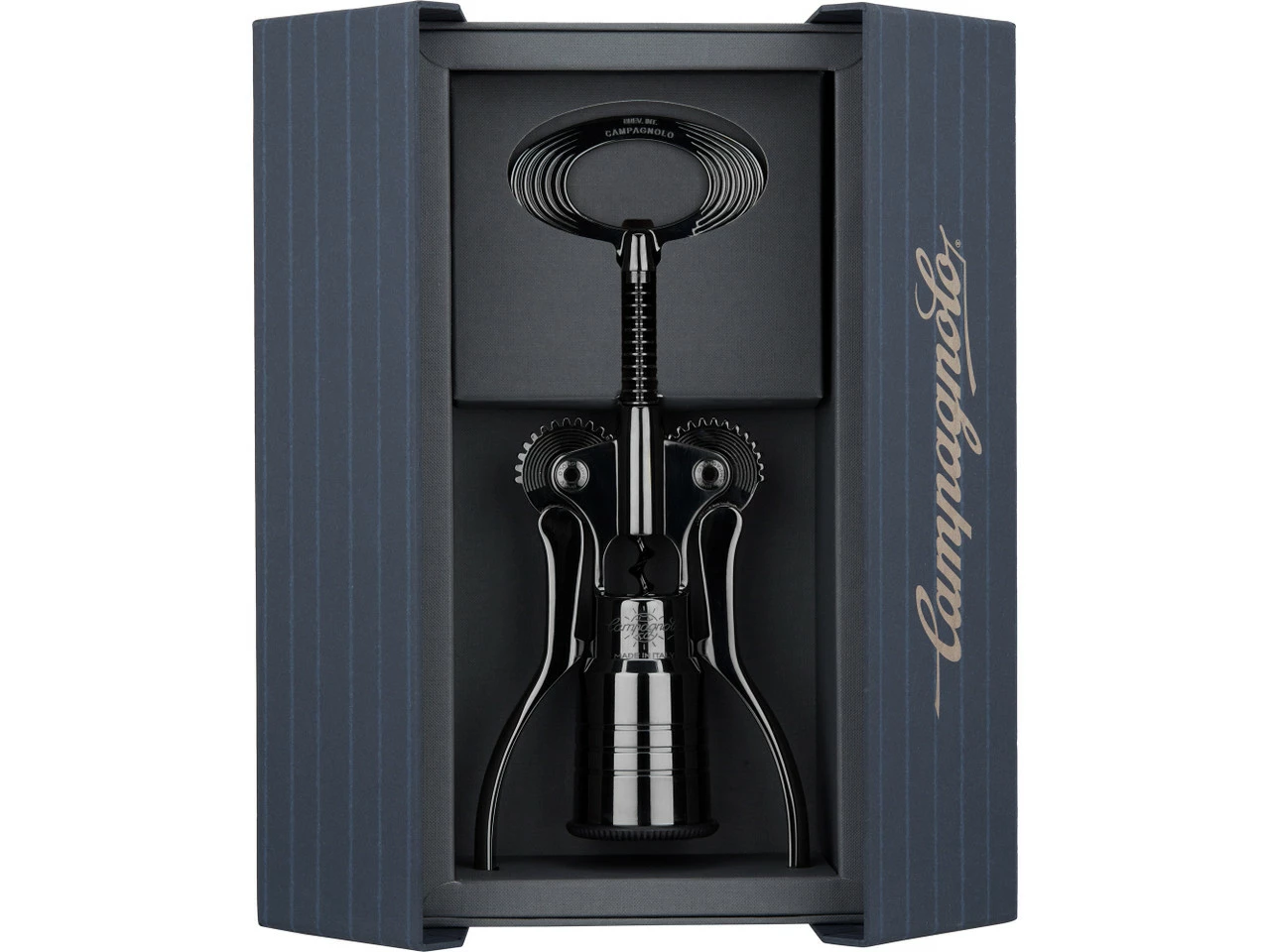 Herstellernummern:bronze:CTB-BR15silber satiniert:CTB-SA15titanium:CTB-TN20schwarz hochglänzend:CTB-CN20silber hochglänzend:CTB-CL20Lieferumfang:1 x Korkenzieher Campagnolo Big1 x Geschenkbox Campagnolo