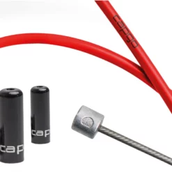 Das capgo BL (Blue Line) Zugset für Vario-Sattelstützen umfasst PTFE-gefettete, verschiedenfarbige Außenhüllen, „Speed Slick“ Züge und gedichtete Endkappen aus Aluminium.