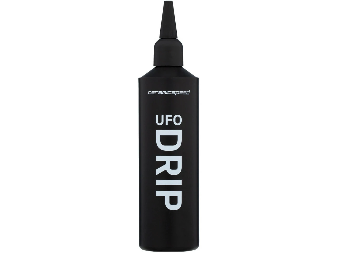 Das UFO Drip Chain Coating Kettenbeschichtungsmittel von CeramicSpeed basiert auf einer überarbeiteten, verbesserten Formel, sodass es 300 Kilometer lang an der Kette haftet und die Reibung noch stärker reduziert wird als beim Vorgängerprodukt.