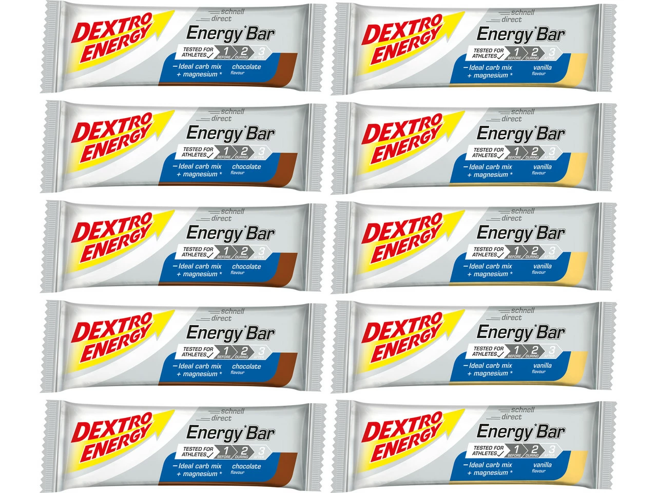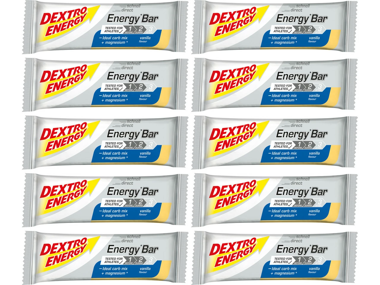 Die Energy Bar Riegel von Dextro Energy sorgen während sportlicher Ausdauerbelastungen für eine rasche Zufuhr von Kohlenhydraten und stellen zusätzlich Magnesium bereit. Sie sind leicht zu kauen und überzeugen mit einer guten Verträglichkeit.