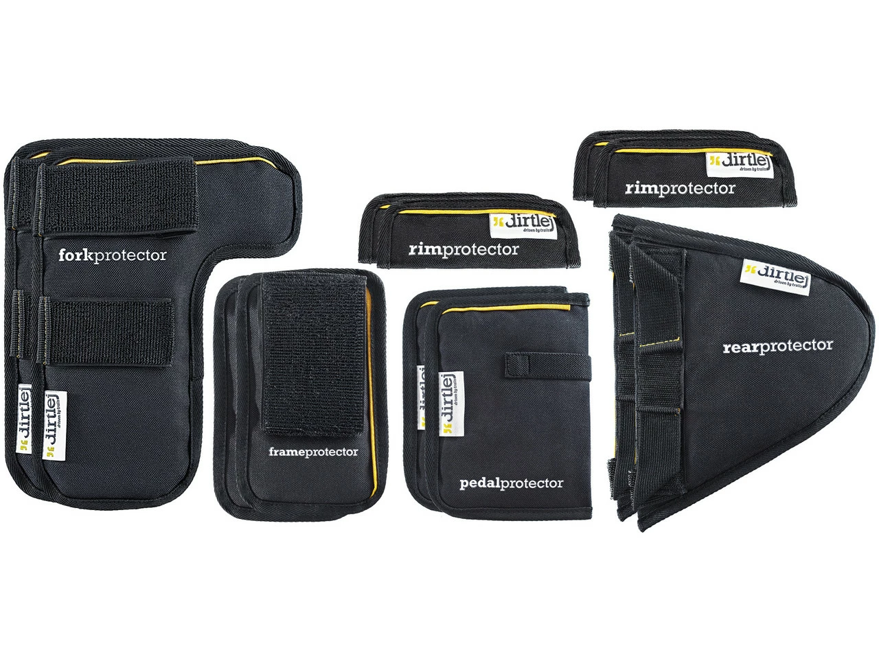 Lieferumfang:2 x Rahmenschutz dirtlej2 x Pedalschutz dirtlej2 x Federgabelschutz dirtlej4 x Felgen-/ Reifenschutz dirtlej2 x Hinterbauschutz