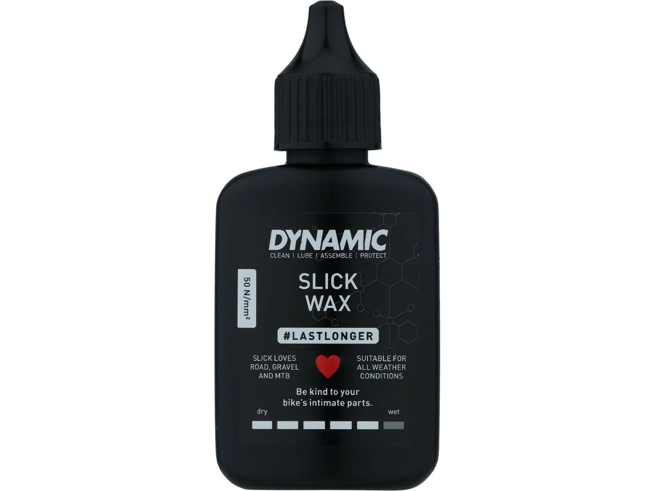 Das Slick Wax Kettenwachs von Dynamic bewahrt Deinen Antrieb vor Verschleiß durch Korrosion und Schmutz. Dabei punktet es besonders mit langer Haltbarkeit bzw. verlängerten Schmierintervallen.