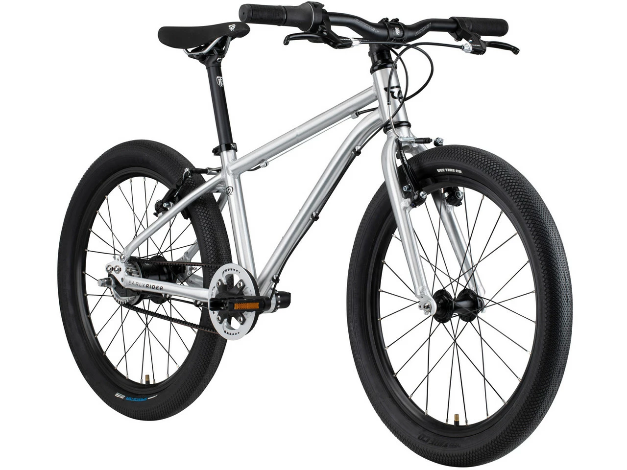 Spezifikationen:Einsatzbereich:KidsLaufradgröße:20″Material Rahmen:AluminiumMaterial Gabel:AluminiumKomponenten:Rahmen:EARLY RIDER Belter 20Gabel:EARLY RIDER Belter 20Vorbau:Ritchey OS, Reach 35 mm, Klemmung 31,8 mmLenker:Ritchey OS, Breite 560 mm, Rise 18 mmGriffe:EARLY RIDER Wing, 120 mm (links), 70 mm (rechts)Steuersatz:EARLY RIDER 1 1/8″ , PatronenlagerSattelstütze:Ritchey 25,4 x 250 mmSattel:EARLY RIDER WingKurbel:EARLY RIDER 120 mmPedale:EARLY RIDER Aluminium KäfigpedaleBremsen/Bremshebel:Tektro 837AL, Bremsarme 102 mm, Bremsgriff Tektro JL510TSSchalthebel:SturmeyAntrieb:Gates 976-8M mit Riemenscheibe vorne 46 T, hinten 32 TFelgen:Double Wall 24 Loch (VR), Double Wall 28 Loch (HR)Reifen:Vee Speedster 20 x 2,0″Freigaben:Gewichtsbeschränkung:40 kgFeatures:empfohlen für Kinder zwischen 5,5 und 8 Jahrenab einer Innenbeinlänge von 52 cmSitzhöhe einstellbar von 57,5 – 69 cm4-fach NabenschaltungGeometrie:Sitzrohrlänge: 280 mmeffektive Oberrohrlänge: 448 mmSteuerrohrlänge: 92 mmKettenstrebenlänge: 331,5 mmRadstand: 838 mmSitzwinkel: 73°Lenkwinkel: 69,5°Überstandshöhe: 515 mmLenkerbreite: 560 mmKurbellänge: 120 mmHerstellernummer:BR20