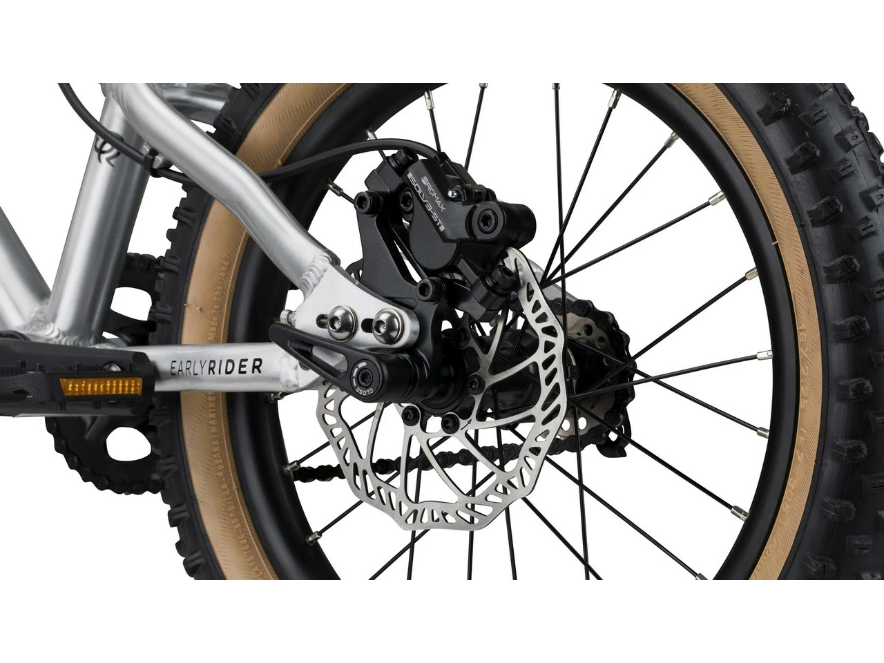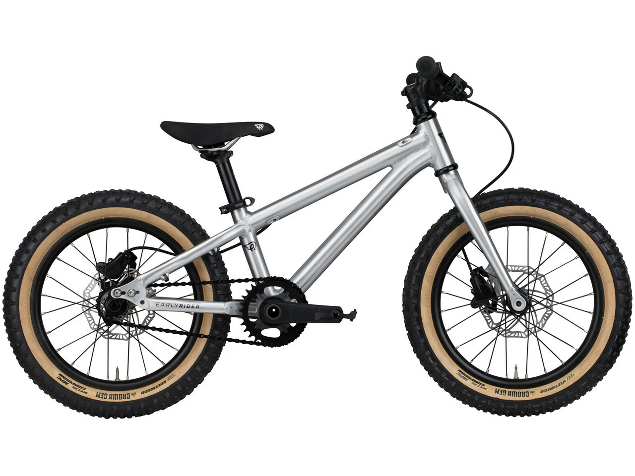 Spezifikationen:Einsatzbereich:KidsLaufradgröße:16″Material Rahmen:AluminiumMaterial Gabel:AluminiumKomponenten:Rahmen:EARLY RIDER Hellion 16Gabel:EARLY RIDER Hellion 16Vorbau:Ritchey OS, Reach 35 mm, Klemmung 31,8 mmLenker:Ritchey OS, Breite 480 mm, Rise 18 mmGriffe:EARLY RIDER, Lock On Kraton, 92 mmSteuersatz:EARLY RIDER 1 1/8″ , PatronenlagerSattelstütze:Ritchey 27,2 x 185 mmSattel:EARLY RIDER Kunstleder (Nubuk-Imitat)Kurbel:Samox 110 mm NQF Direct Mount, 30 ZPedale:EARLY RIDER P1 Resin PlattformpedaleBremsen/Bremshebel:Promax DSK926 Hydraulic JR, 140 mm, Bremsgriff Promax DSK926 JRKassette:EARLY RIDER Singlespeed KitKette:KMC X10Felgen:Double Wall 24 Loch, Tubeless ReadyReifen:Vee Crown Gem Skinwall 16 x 2,25″Freigaben:Gewichtsbeschränkung:35 kgFeatures:empfohlen für Kinder zwischen 3,5 und 6 Jahrenab einer Innenbeinlänge von 48 cmSitzhöhe einstellbar von 46,5 – 57 cmGeometrie:Sitzrohrlänge:210 mmeffektive Oberrohrlänge:399 mmSteuerrohrlänge:90 mmKettenstrebenlänge:280 mmRadstand:720 mmSitzwinkel:71°Lenkwinkel:68°Überstandshöhe:420 mmLenkerbreite:480 mmKurbellänge:110 mmHerstellernummer:HN16