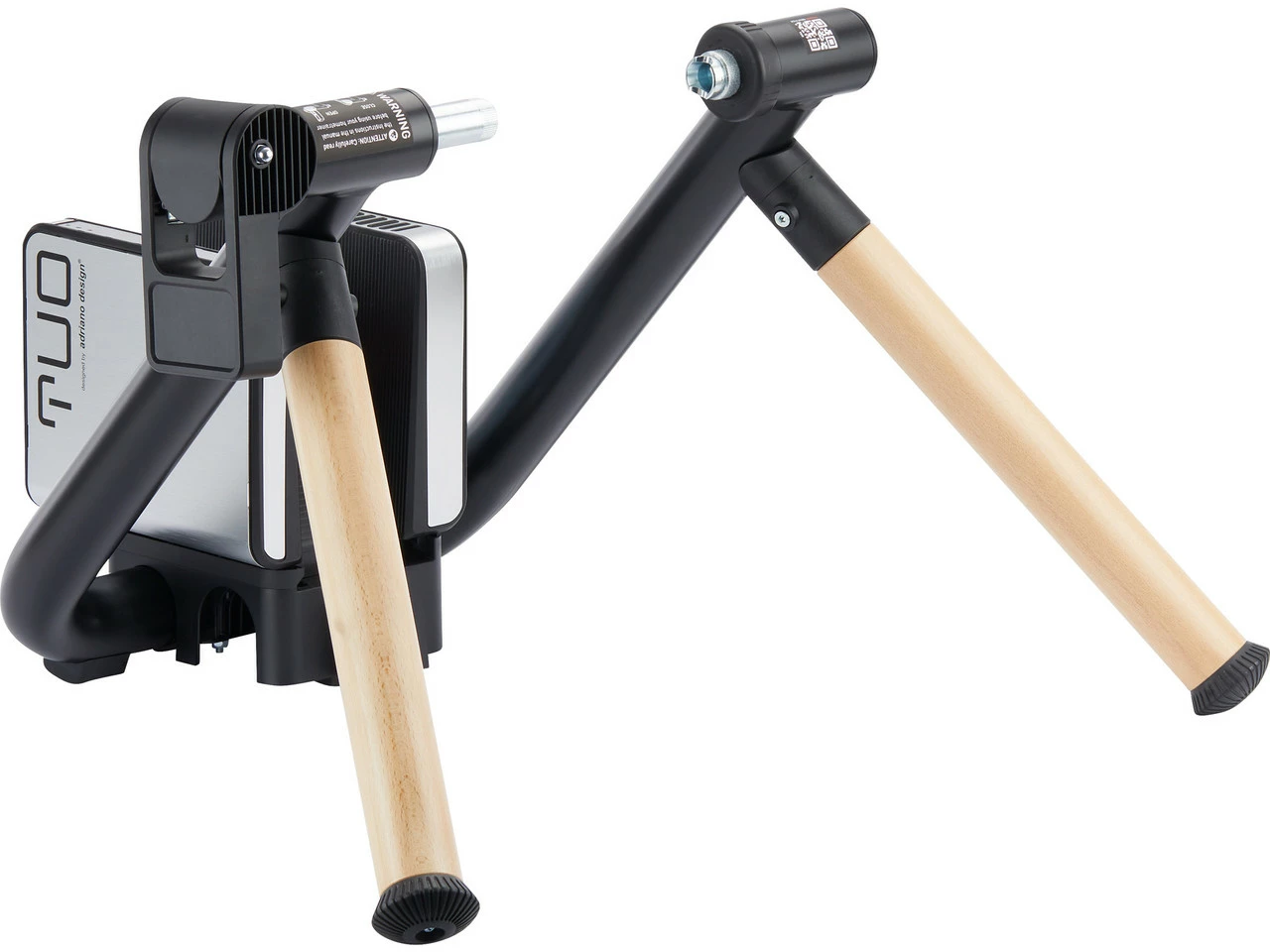 Der Tuo Rollentrainer von Elite ist bereits vormontiert, sodass Du direkt mit dem Indoor-Training beginnen kannst. Beine aus Buchenholz und ein gebürsteter Metallrahmen veredeln diese elegante Trainingsrolle. Das Design der Rolle macht sie bei jedem Training, egal ob zu Hause oder in der Halle, zu einem ganz besonderen Hingucker. Auch kompakt zusammengeklappt lässt sie sich besonders ästhetisch aufbewahren. Da sie kaum mehr als 10 kg wiegt, gestaltet sich ihr Transport als besonders leicht. Zudem ist der Trainer sehr schnell aufgebaut. Der Rahmen erlaubt außerdem längere Kettenstreben, sodass Du unter anderem mit 29″ -Rädern trainieren kannst. Egal ob Rennrad oder MTB, der Tuo lässt Dich besonders stilvoll trainieren!