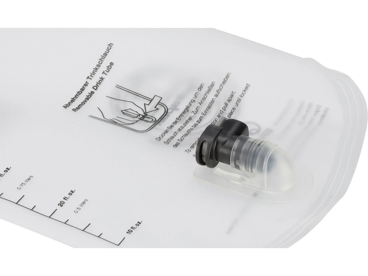 Ein großer Vorteil der BH300 Trinkblase ist, dass man diese auf links drehen kann. Somit ist ein einfaches, effektives Reinigen und Trocknen möglich. Die große durchgängige Öffnung mit Schiebeverschluss erleichtert zudem die Handhabung. Zur Reinigung von Mundstück und Trinkschlauch eignet sich die HydraPak Reinigungsbürste.