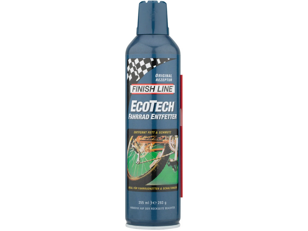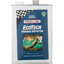 Finish Line EcoTech 2 ist ein biologisch abbaubarer Reiniger für den Einsatz am gesamten Fahrrad. Die Entfetter-Lösung beseitigt starke Fett- und Schmutzablagerungen, greift aber gleichzeitig Gummi- und Kunststoffteile nicht an. Der Reiniger enthält Korrosions- und Rostschutzmittel und sorgt auf Metallteilen für eine glänzende Oberfläche. EcoTech 2 kann, je nach Verschmutzungsgrad, für eine mildere und sparsamere Reinigung mit Wasser verdünnt werden.