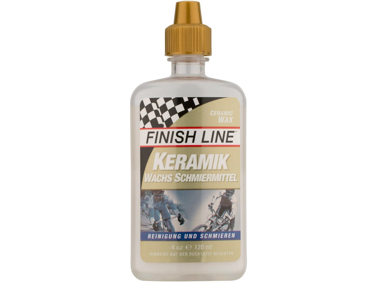 Das Premium-Synthetik Wachsschmiermittel mit patentierter Keramik-Technologie aus Boron Nitriden in Nano-Größe ist ein besonders fortschrittliches Schmiermittel von Finish Line. Es bildet eine trockene nässe- und schmutzabweisende Wachs-Keramikschicht, welche Reibung reduziert, Abnutzung minimiert und besonders langanhaltend ist. Mehrmaliges Auftragen verbessert diese Wirkung. Es ist besonders für den Langzeiteinsatz unter trockenen und staubigen Bedingungen geeignet.