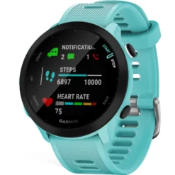 Mit der Forerunner 55 GPS Smartwatch von Garmin behältst Du Deine sportlichen Leistungen beim Radfahren, Laufen oder Triathlon im Auge. Viele Gesundheits- und Trainingsfunktionen wie Workout-Empfehlungen und ein Erholungsratgeber unterstützen Dich dabei, Deinen Alltag sportlich zu gestalten und Deine Trainingsziele zu erreichen, ohne Dich dabei zu überfordern.