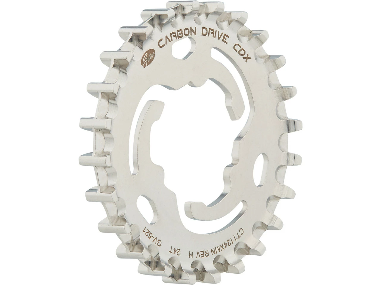 Features:CDX-Niveau: High-End-Variante für hohe Belastungen und beste Performancegeeignet für Schlamm, Sand, Schnee und Eis sowie sämtliche Straßenmittlere Führungsnut (CenterTrack)hohe Laufleistungrobuster EdelstahlSureFit-Ritzeldesign: flexibles Interface für 3-Nocken-Aufnahme, größere MontagetoleranzTechnologie:Gates Carbon Drive System