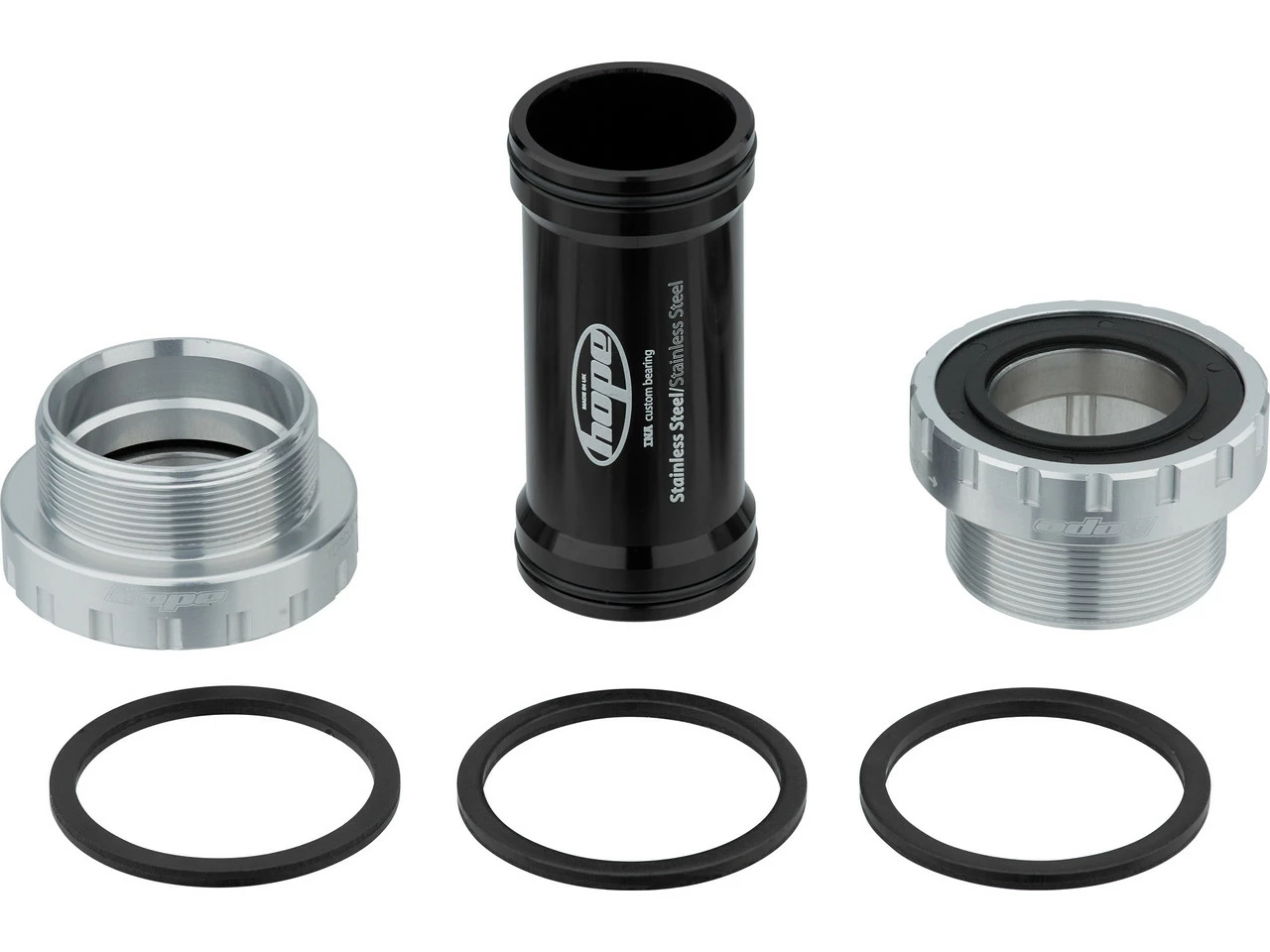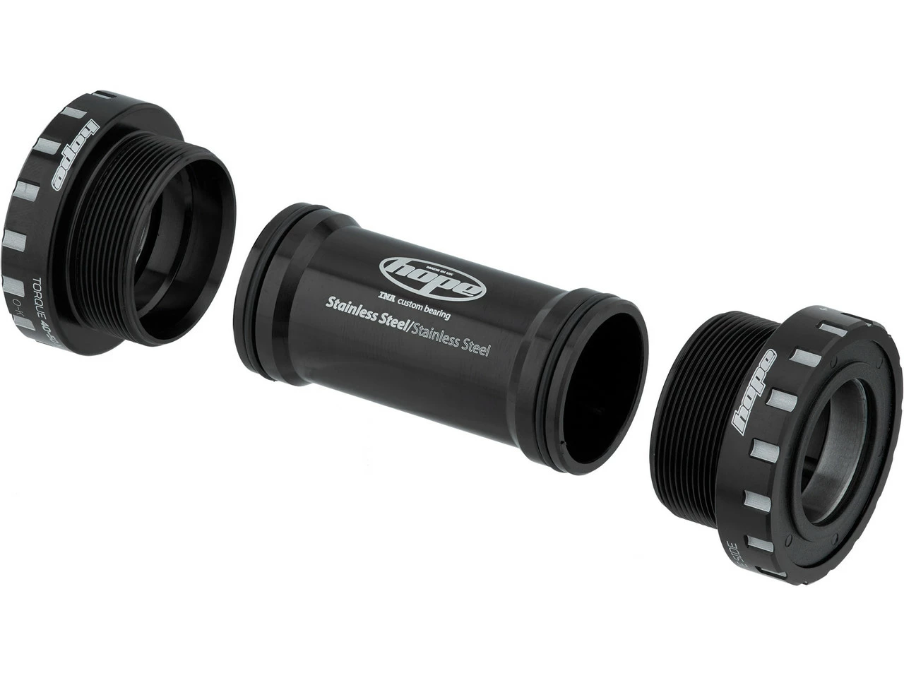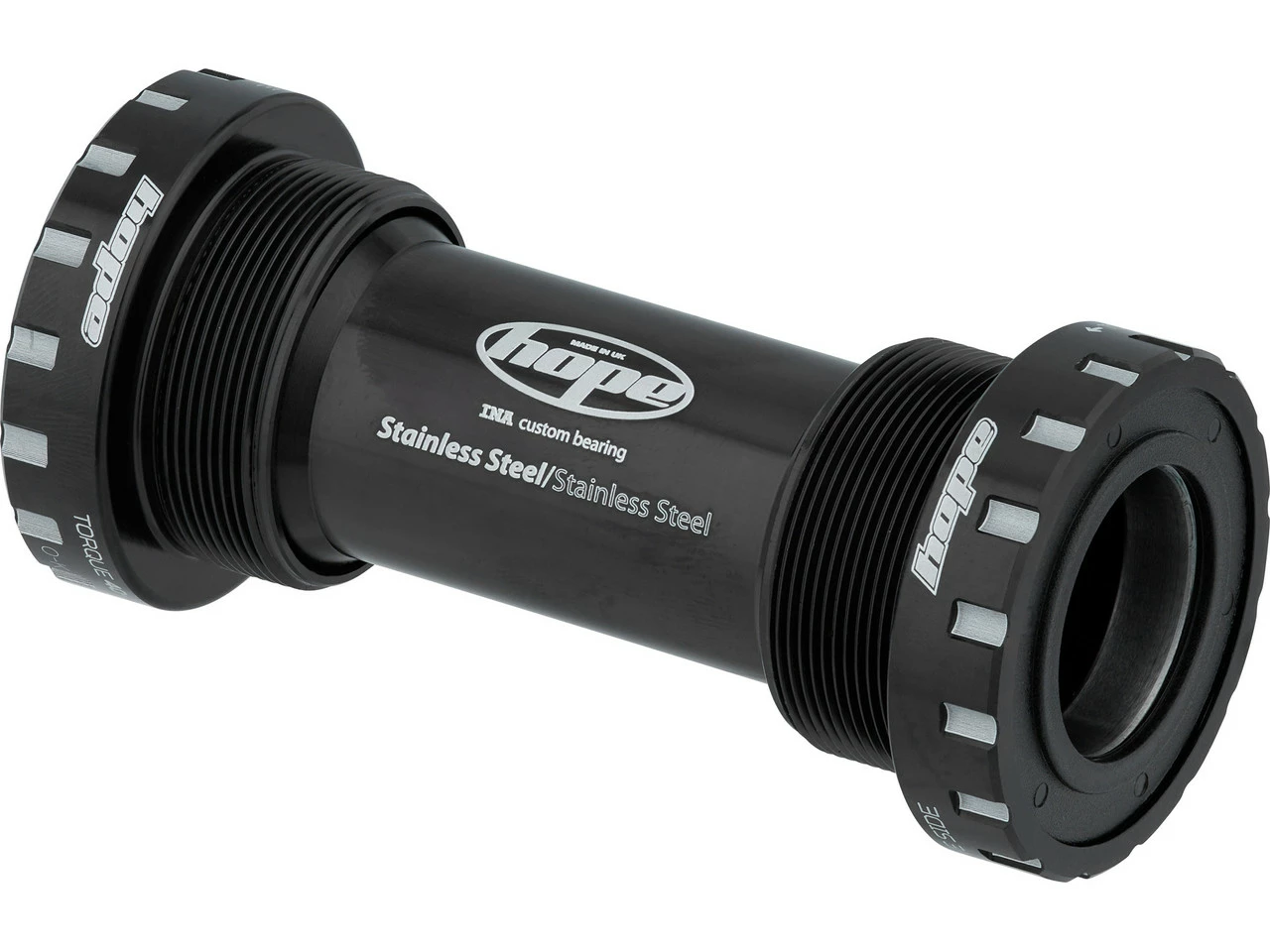 Das Hope Innenlager ist mit den gängigsten Kurbeln von Shimano (Hollowtech II) und Race Face kompatibel. Ein Adapter ermöglicht die Verwendung mit Truvativ / GXP-Kurbeln. In den CNC-gefrästen Alu Schalen sind Industrielager verbaut. Die zweifach abgedichteten Edelstahllager werden speziell für Hope gefertigt und können einfach aus den Schalen ausgepresst werden. Sie laufen direkt auf die Achse der Kurbel, um die Langlebigkeit des Innenlagers zu gewährleisten.