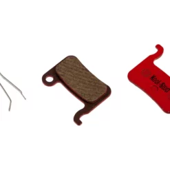 Organische Scheibenbremsbeläge werden fast ohne Metallanteile hergestellt und mit Kunsthart gebunden. Die Beläge enthalten geringe Mengen Metallpartikel, da diese die Bremseigenschaften verbessern. Trotzdem sind die Beläge größtenteils organisch, man könnte auch sagen, sie sind halbmetallisch. Auf Dauer haben organische Scheibenbremsbeläge eine hohe Bremsleistung und sind sehr rotorschonend. Die organischen Scheibenbremsbeläge von Kool Stop gibt es alternativ auch mit Aluminiumhalter. Sie wiegen pro Paar nur etwa 10 g.