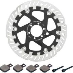 Technische Daten Bremsscheibe:Montage:6-LochDurchmesser:180 mmBauart:2-teiligMaterial Disc:EdelstahlSpezifikationen Bremsbeläge:Belagsmischung:organischMaterial Trägerplatte:StahlKühlrippen:NeinFeatures:Bremsscheibe in Silber-SchwarzAusführungen:7.P: