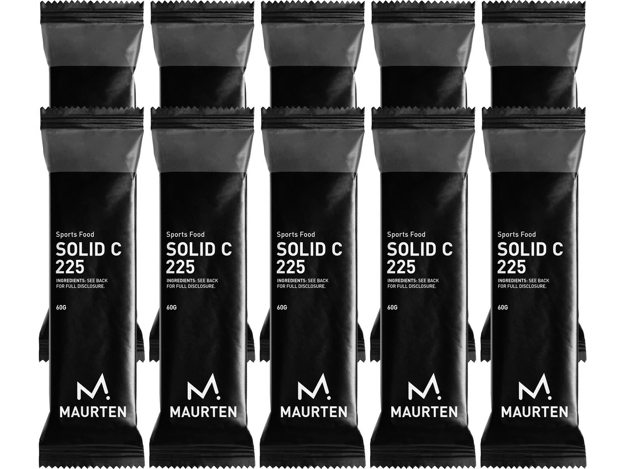 Brennwert:1581 kJ (374 kcal) / 948 kJ (225 kcal)Fett:6 g / 3,6 gdavon gesättigte Fettsäuren:1,1 g / 0,7 gKohlenhydrate:73,2 g / 43,9 gdavon Zucker:34,2 g / 20,5 gBallaststoffe:4,0 g / 2,4 gProtein:4,9 g / 2,9 gSalz:1,14 g / 0,68 gLieferumfang:10 x Energieriegel Maurten Solid C 225, Nettofüllmenge 600 g