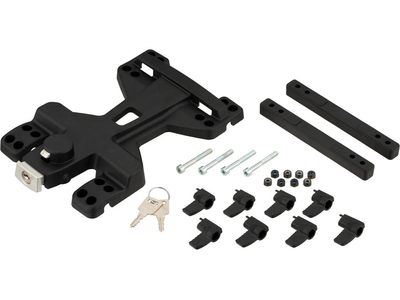 Der ORTLIEB Adapter für Travel-Biker und Trunk-Bag montiert die Travel-Biker, Trunk-Bag und Trunk-Bag RC Modelle bis 2015 (mit ORTLIEB Befestigungssystem) sicher auf Gepäckträgern mit einer maximalen Breite von 140 mm.