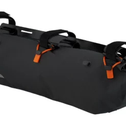 Die wasserdichte ORTLIEB Frame-Pack RC Toptube Oberrohr-Rahmentasche hat einen Rollverschluss und bietet sich fürs Bikepacking an, wenn im Rahmendreieck nur wenig Platz vorhanden ist. Ob Trinkflaschenhalter oder vertikaler Dämpfer Deines Fullys ebenfalls Platz beanspruchen – in dieser Tasche bringst Du schwerere Gegenstände wie Werkzeug, Zeltstangen und Proviant optimal unter. Der Rollverschluss wird mit Silikonringen gesichert und ermöglicht Dir eine große Öffnung zum einfachen Befüllen. Das leichte, aber widerstandsfähige Nylongewebe ist wasserdicht beschichtet und stellt zuverlässigen Schutz für Deine Habseligkeiten sicher. Mittels verschieden positionierbarer Klettverschluss-Schlaufen befestigst Du die Tasche am Oberrohr und kannst zusätzlich zwei separate Klettbänder an Sitz- und/oder Unterrohr anbringen. Dabei ist sie auch für Carbon-Rahmen geeignet.