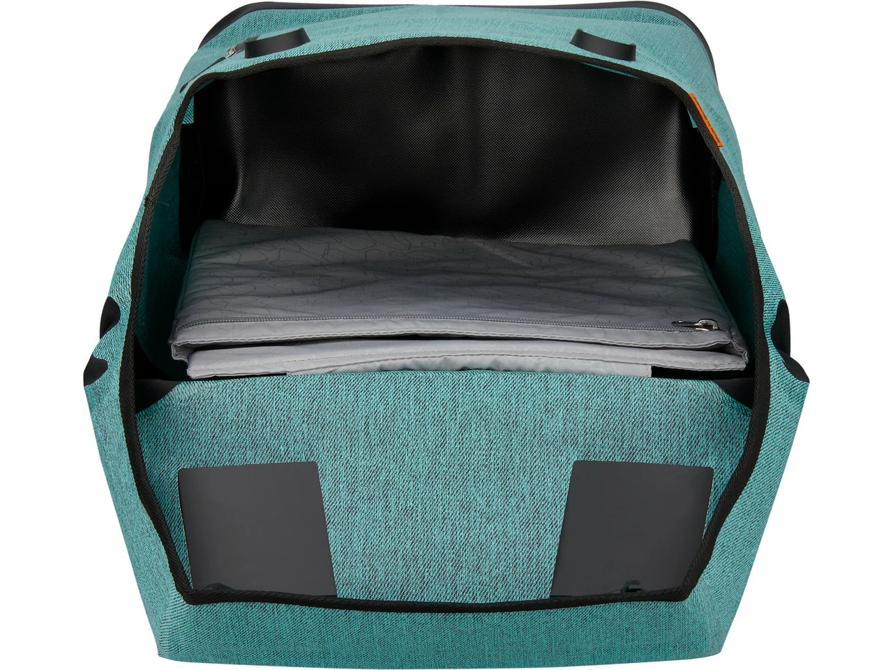 Der Soulo von ORTLIEB ist ein wasserdichter Rucksack für die Stadt, der mit einem cleveren Magnetdeckel und urbanem Design überzeugt. Der Deckel wird von zwei starken Magneten gehalten und ermöglicht Dir zusammen mit der großen Öffnung ein schnelles und einfaches Handling des Inhalts. Keine Sorge: Dank unsichtbarer Riegel an beiden Magneten, die Du mit einem kurzen Griff unter den Deckel betätigst, bleiben Deine Habseligkeiten vor unbefugtem Zugriff geschützt. Im Inneren befinden sich ein gepolstertes Fach für Notebooks bis zu einer Größe von 39 x 27 x 2,5 cm sowie ein flacher Organizer mit Innentaschen. In der kleinen, nicht wasserdichten Außentasche mit Reißverschluss findet z. B. Dein Schlüssel Platz. Das Material punktet mit einer angenehmen Haptik. Der Boden ist verstärkt und somit besonders widerstandsfähig. Auch auf hohen Tragekomfort kannst Du Dich verlassen: Die Schulterträger sind ergonomisch gestaltet und mit einem abnehmbaren Brustgurt versehen. Die Rückenpolster aus TPU sind bequem und bilden Ventilationskanäle für ausreichend Belüftung.