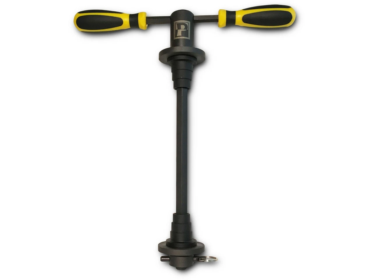 Features:Drehspindel mit T-GriffGewindestange 330 mmgeeignet für 1″ , 1 1/8″ , 1 1/4″ , 1.5″ SteuersatzschalenLieferumfang:1 x Steuersatzeinpresswerkzeug Pedros