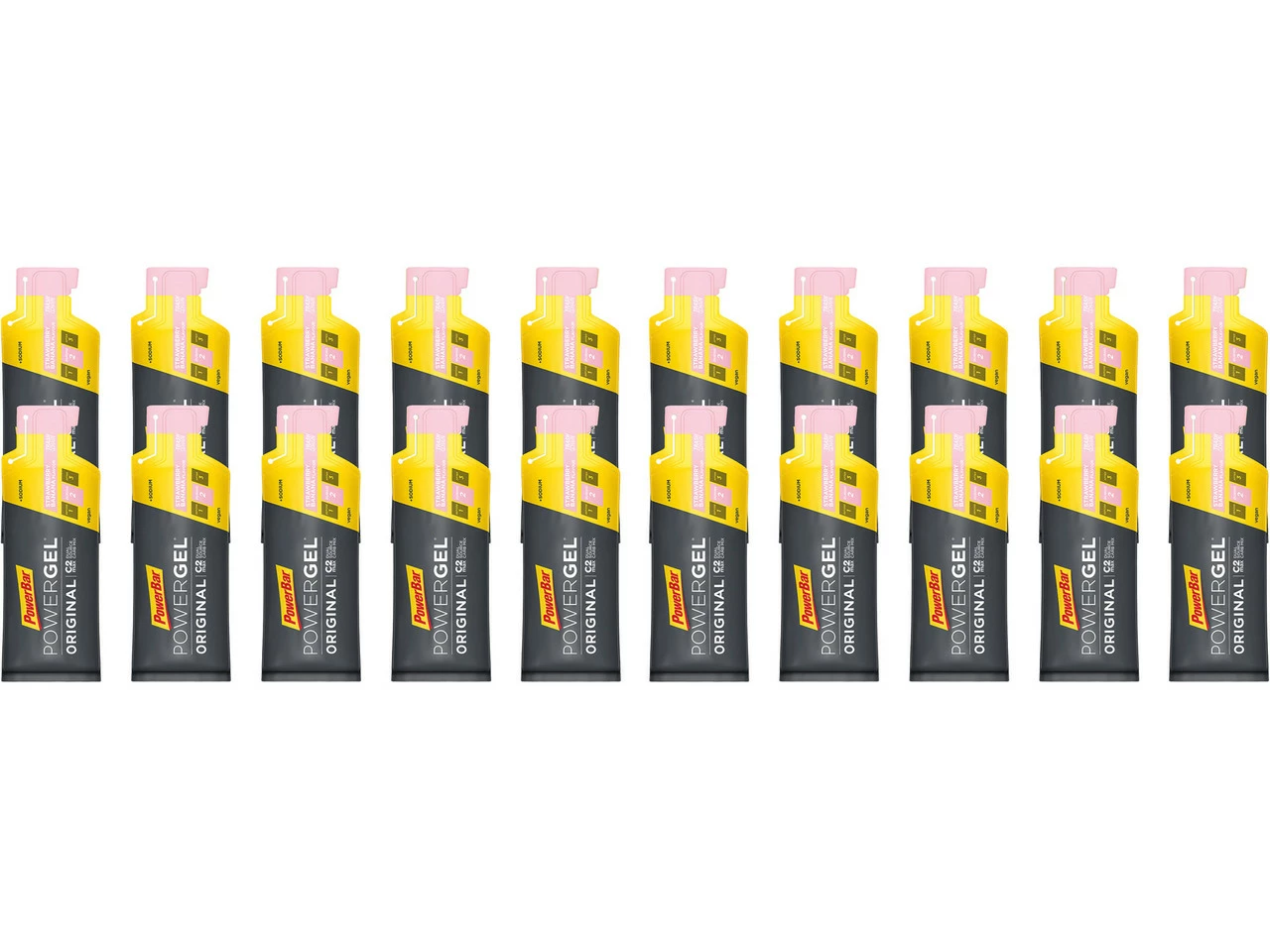 Vanilla:Konzentriertes Kohlenhydratgel für Sportler mit Natrium. (CH: Ergänzungsnahrung.) Vanille GeschmackStrawberry Banana:Konzentriertes Kohlenhydratgel für Sportler mit Natrium. (CH: Ergänzungsnahrung.) Erdbeer Banane GeschmackLemon Lime:Konzentriertes Kohlenhydratgel für Sportler mit Natrium. (CH: Ergänzungsnahrung.) Zitronen GeschmackSalty Peanut:Konzentriertes Kohlenhydratgel für Sportler mit Natrium. (CH: Ergänzungsnahrung.) Erdnuss GeschmackTropical Fruit:Konzentriertes Kohlenhydratgel für Sportler mit Natrium. (CH: Ergänzungsnahrung.) Tropische Früchte GeschmackBlack Currant – Caffeine:Konzentriertes Kohlenhydratgel für Sportler mit Koffein und Natrium. (CH: Ergänzungsnahrung.) Schwarze Johannisbeere GeschmackGreen Apple – Caffeine:Konzentriertes Kohlenhydratgel für Sportler mit Koffein und Natrium. (CH: Ergänzungsnahrung.) Grüner Apfel GeschmackEspresso – Caffeine:Konzentriertes Kohlenhydratgel für Sportler mit Koffein und Natrium. (CH: Ergänzungsnahrung.) Kaffee Geschmack