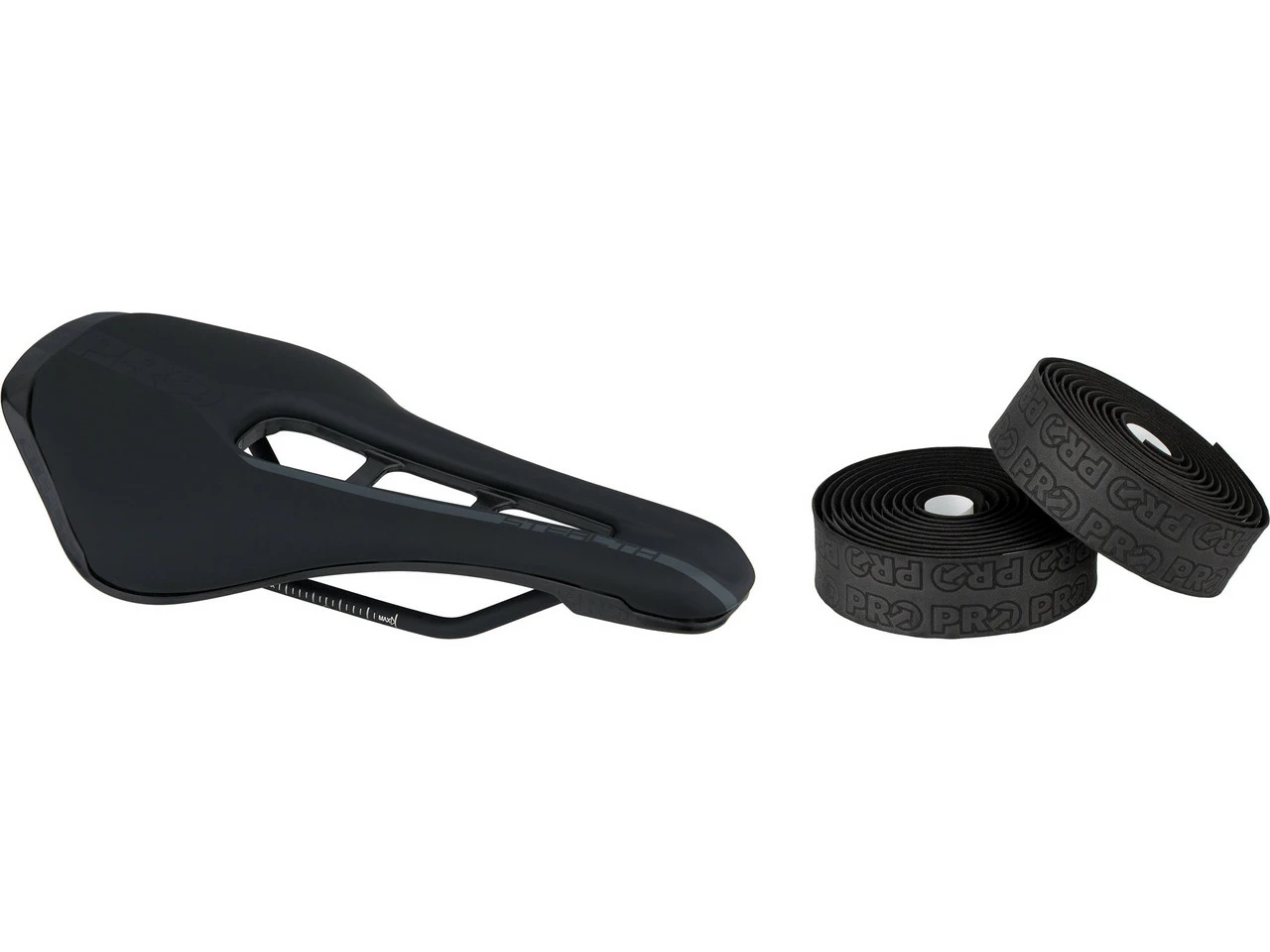 Dieses Bundle besteht aus dem PRO Stealth Rennrad-Sattel mit extragroßer Aussparung zur Druckentlastung und dem Sport Control Lenkerband in der Team Version mit eingeprägten Markenlogos.
