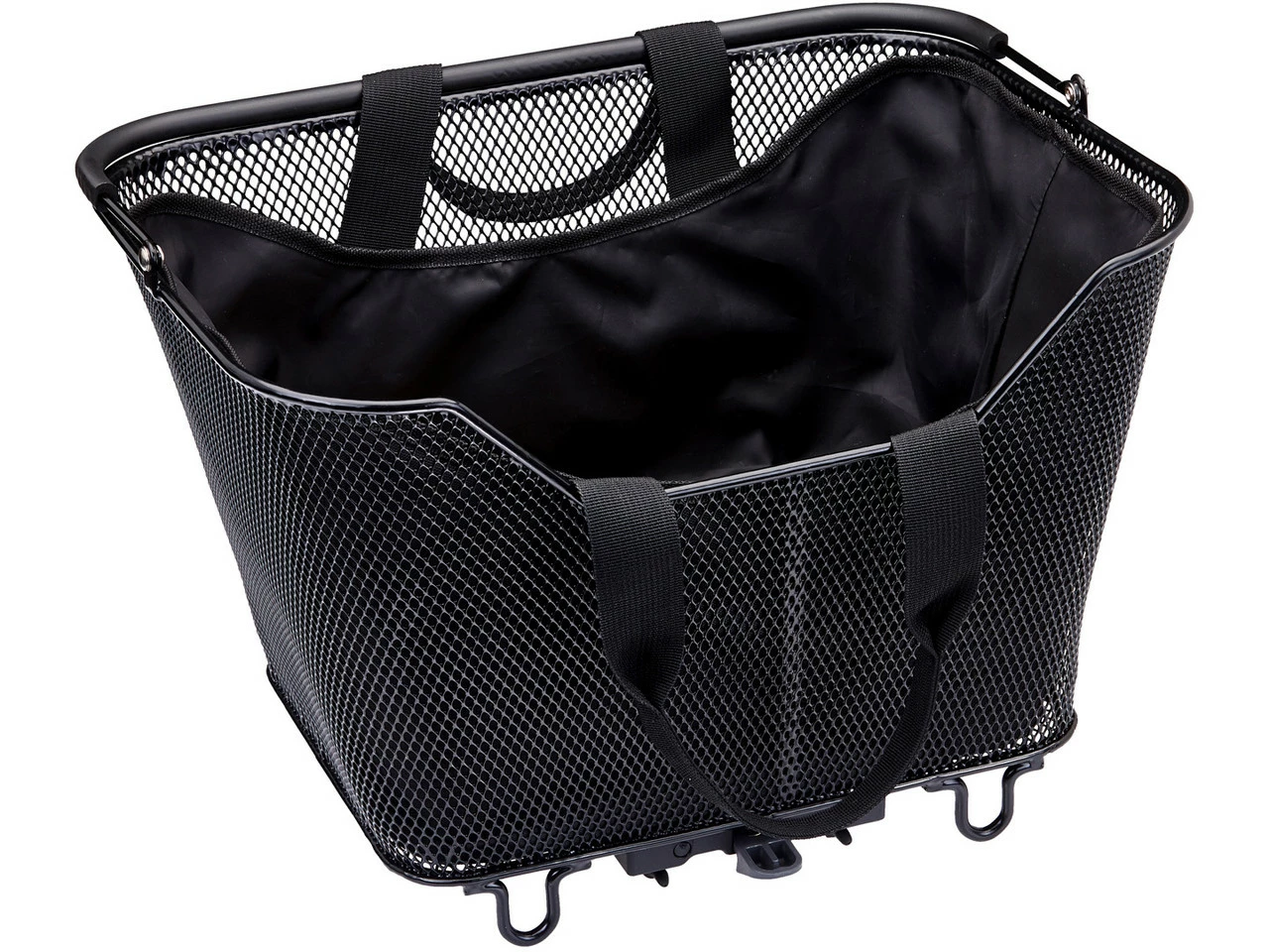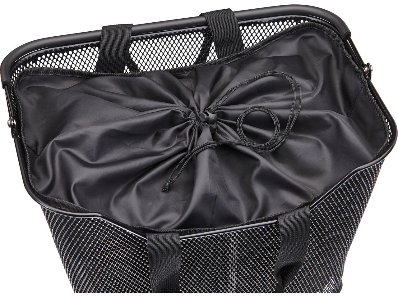 Lea ist die perfekte Schnell-mal-in-den-Laden-huschen-Begleiterin: Das flexible Leichtgewicht hat robuste Tragegriffe, eine verschließbare Innentasche und einen Regenschutz mit Kordelzug. Der besondere Clou sind aber die eingearbeiteten Magnete, die Lea – zurück im Körbchen – festen Halt geben. Der Trick funktioniert mit jedem Drahtkorb.