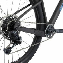Das Santa Cruz Highball 3.0 Cross-Country-Hardtail aus besonders leichtem CC Carbon glänzt mit SRAM X1 Kurbeln und Reserve Felgen aus Carbon sowie einer elektronischen SRAM X01 AXS 1×12-fach-Schaltung. Diese lässt sich ganz ohne Kabel bedienen und sorgt so für ein unkompliziertes Set-Up mit cleaner Optik. Während 100 mm Federweg vorne Unebenheiten wegschlucken, kannst Du Fahrt aufnehmen und sehr schnell sehr weit kommen.