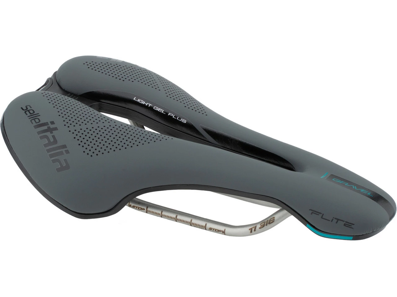 Der Flite Boost mit Titanstreben ist ein Gravel-Rennsattel von Selle Italia und verfügt über eine Superflow-Aussparung zur Druckentlastung.