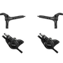 Das Shimano BR-MT200 + BL-MT201 Scheibenbremsenset (VR + HR) versorgt den Fahrer mit einer Bremsleistung, die an das Niveau von MTB-Einsteigern angepasst ist. Es eignet sich aber auch für den Einsatz am Trekking- oder City-Bike. Die beiden 2-Kolben-Bremssättel arbeiten zuverlässig und weitgehend geräuscharm und lassen sich per One Way Bleeding ganz einfach entlüften. Auf der Geberseite befinden sich zwei 3-Finger-Bremshebel, deren Griffweite mit einem Werkzeug angepasst werden kann. So lässt sich auch für kleinere Hände eine bequeme Einstellung der Bremsgriffe finden.