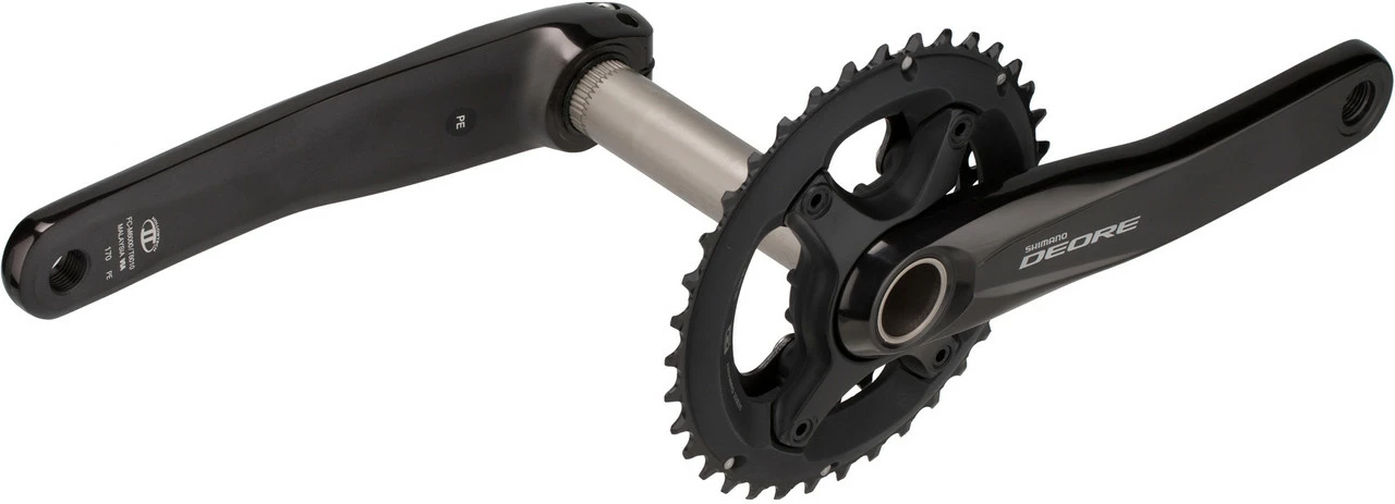 Bei der Shimano Deore FC-M6000-2 Kurbelgarnitur kommt erstmals auf Deore Niveau das Hollowtech II Konzept zum Einsatz, das für ein optimales Verhältnis zwischen der Festigkeit der Kurbelarme, der Steifigkeit der Achse und dem Gewicht sorgt. Die Aluminium-Kurbel ist gegenüber dem Vorgängermodell schlanker geworden und erinnert optisch an die ein Jahr zuvor vorgestellte SLX FC-M7000. Deore FC-M6000-2 ist aber weiterhin mit 10-fach Schaltungen kompatibel. Die zwei Kettenblätter sitzen an einem asymmetrischen Spider mit 96/64 mm Lochkreis, der wiederum von den Kurbeln aus den teureren Gruppen übernommen wurde. So präsentiert sich die Allround-Kurbel Deore wie eh und je als solide Wahl für alle MTB-Spielarten von Cross Country bis All Mountain.
