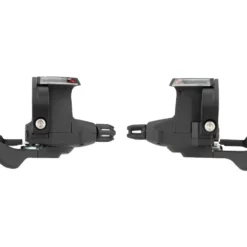 Dieses Shimano Deore SL-M6000 Schaltgriff-Set umfasst zwei Shifter – 2-/3-fach für links und 10-fach für rechts –, die beide mit einer diskreten, doch gut lesbaren Ganganzeige versehen wurden. Das Set ist für den Gebrauch mit MTB-Schaltungen geeignet, wobei die Montage am Lenker über klassische Klemmschellen erfolgt. Wie mit allen Rapidfire Plus Shiftern lassen sich mit den SL-M6000 bis zu drei Gangstufen auf einmal zurückschalten. Außerdem können die Auslösehebel sowohl mit dem Zeigefinger (Ziehen) wie mit dem Daumen (Drücken) betätigt werden, die sogen. 2-Way Release Funktion. Ganz generell überzeugen die Deore Schaltgriffe durch leichtgängige, kräftige Index-Schaltperformance. Ihre Gehäuse bestehen aus Aluminium, die Hebel sind aus Kunststoff bzw. Stahl. Optislick-Innenzüge mit reibungsmindernder Beschichtung und Außenhüllen werden mitgeliefert.