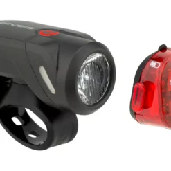 Spezifikationen Frontlicht:Ausführung:Frontlicht (weiß)Montage:LenkerLeuchtmittel:Osram LEDLeuchtkraft:80 LUX (Standard-Modus), 60 LUX (Mid-Modus), 40 LUX (Low-Modus), 20 LUX (Eco-Modus)Leuchtdauer:4 Stunden (Standard-Modus), 5 Stunden (Mid-Modus), 6,5 Stunden (Low-Modus), 15 Stunden (Eco-Modus)Leuchtweite:90 mBetriebsmittel:Akku (Li-Ion), integriertTechnische Daten Frontlicht:Leuchtmodi:Standard-Modus, Mid-Modus, Low-Modus, Eco-ModusLadestandanzeige:5 stufige Akku-Indikator-AnzeigeLadezeit:4,5 StundenSchutzklasse:Spritzwassergeschützt nach IPX4Material:KunststoffStandlicht:Ja (abschaltbar)Schalter:Ein / AusFreigaben:Zulassung im Straßenverkehr:Ja, für Fahrräder (nach §67 StVZO)Prüfziffer:K~~1500Features Frontlicht:werkzeugfreie Montagesehr gute seitliche Sichtbarkeit durch Light Guideintegrierte Micro-USB Ladefunktion360° verstellbare HalterungEinschaltschutz (Doppelklick für AN)Aufladen während des Betriebes möglichSpezifikationen Rücklicht:Ausführung:Rücklicht (rot)Montage:Sattelstütze, StrebenLeuchtmittel:LEDLeuchtdauer:6 StundenBetriebsmittel:Akku (Li-Ion), integriertTechnische Daten Rücklicht:Leuchtmodi:StandardmodusLadestandanzeige:Zweistufiger Akku-/LadeindikatorLadezeit:2 StundenSchutzklasse:IPX4Material:KunststoffStandlicht:Ja (abschaltbar)Schalter:Ein / AusFreigaben Rücklicht:Zulassung im Straßenverkehr:Ja, für Fahrräder (nach §67 StVZO)Prüfziffer:K~~1377Features Rücklicht:Sichtweite von 400 mwerkzeugfreie Montage mit O-Ring-Halterungseitliche SichtbarkeitTechnologien:Micro-USB Ladefunktion: