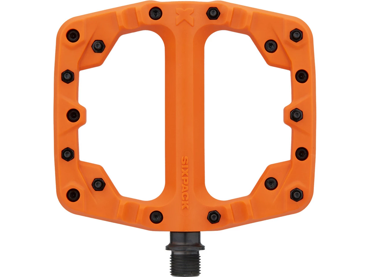 Die Sixpack Racing Kamikaze Plattformpedale aus glasfaserverstärktem Polyamid sind strapazierfähig und ihre langen Stahlpins sorgen auch auf schwierigsten Downhill-Strecken für zuverlässigen Halt.