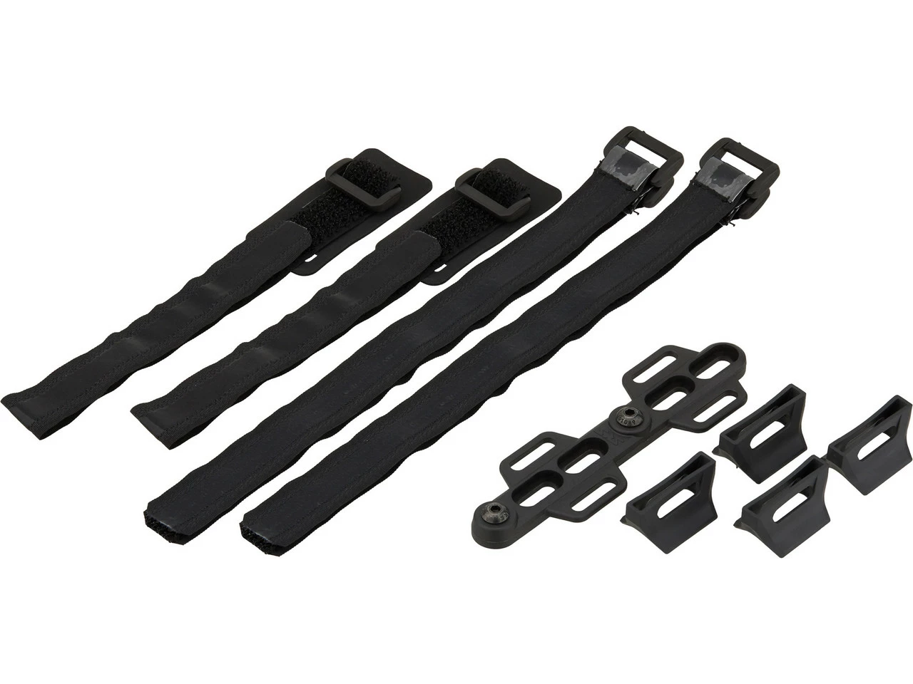 Der SKS Cage Shifter+ Flaschenhalter-Adapter ermöglicht das Verschieben der Flaschenhalter-Bohrungen um 1,5 bis 4,5 cm und bietet zusätzlich seitliche Zubehörhalterungen. Dort lassen sich mithilfe der mitgelieferten Klettverschlussriemen Kleinteile wie Ersatzschlauch, Multitool oder Minipumpe anbringen. Der Adapter besteht aus stabilem, leichtem Kunststoff und fällt dank seines flachen Designs praktisch nicht auf.