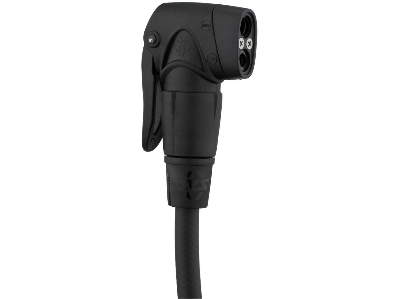 Die Standpumpe Rennkompressor mit Multivalve-Schlauchanschluss von SKS passt auf sämtliche Fahrradschlauchventile.