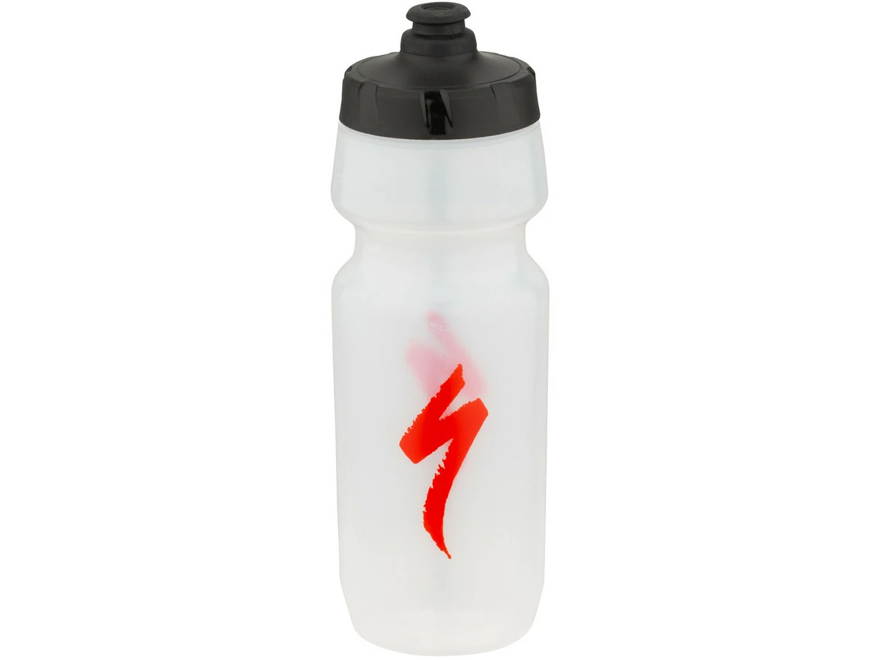 Die Specialized Big Mouth Trinkflasche mit 710 ml Volumen hat ihren Namen von der hohen Durchflussmenge, die jene herkömmlicher Wasserflaschen um 50 % übersteigt. So fällt das Trinken während der Fahrt leichter, zumal sich das große, weiche Ventil gut bedienen lässt und das flexible Material angenehm in der Hand liegt. Die Big Mouth Flasche ist mit verschiedenen Dekors erhältlich – alle mit original Specialized-Logo.