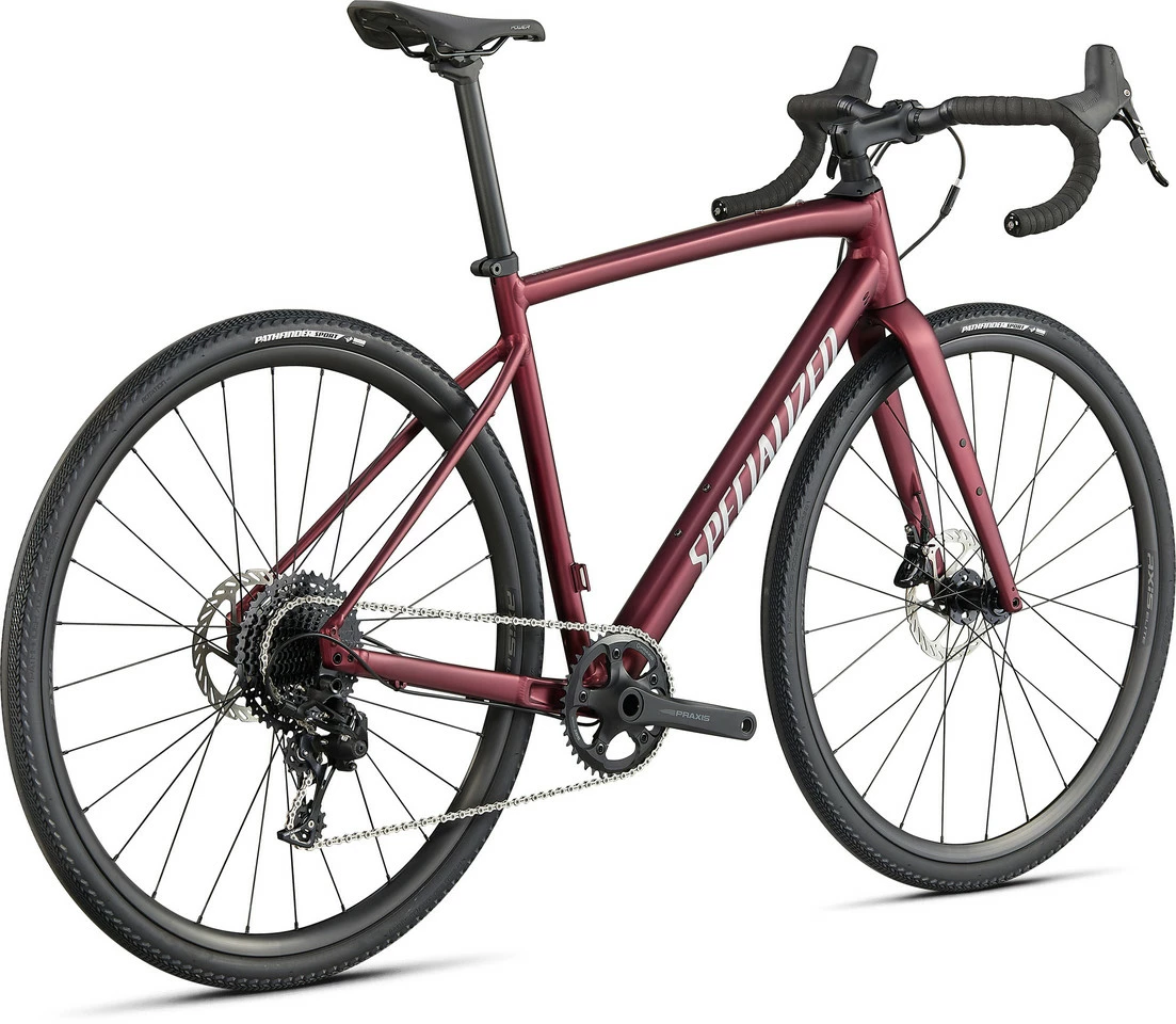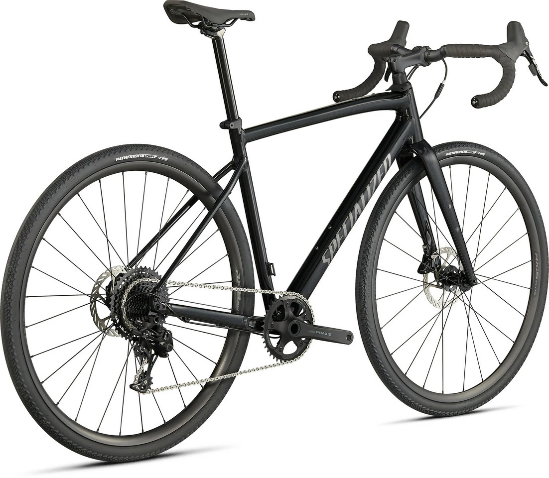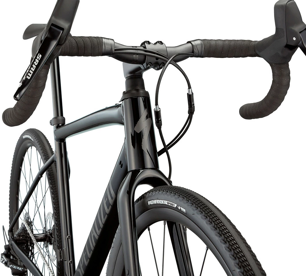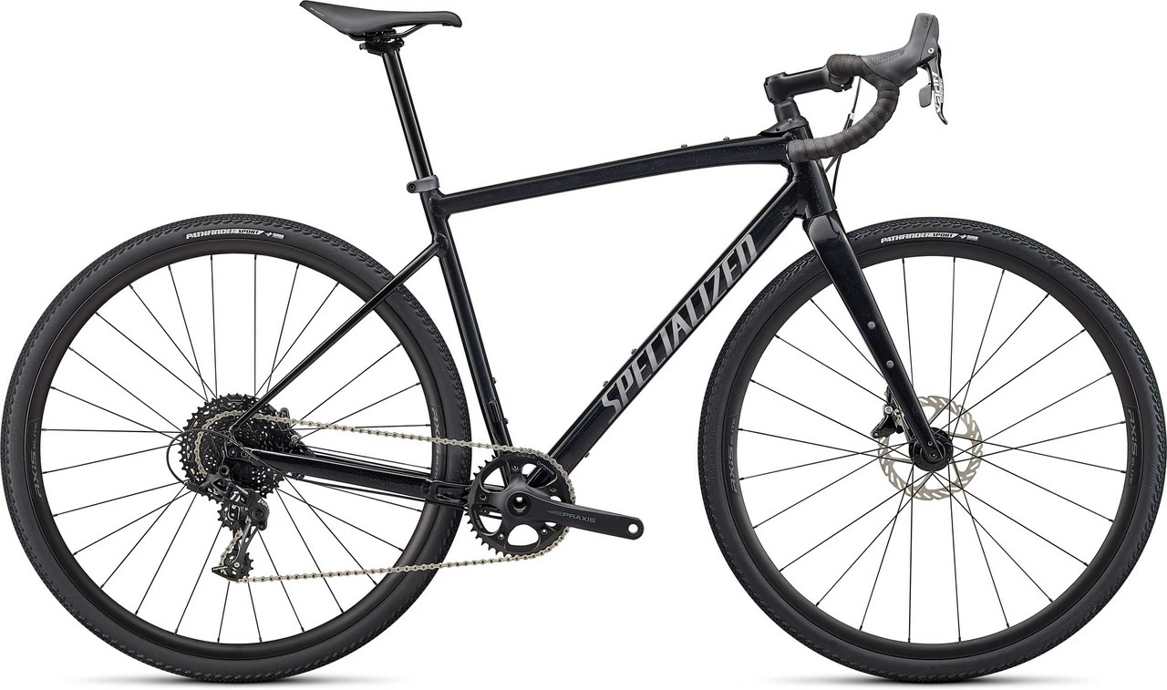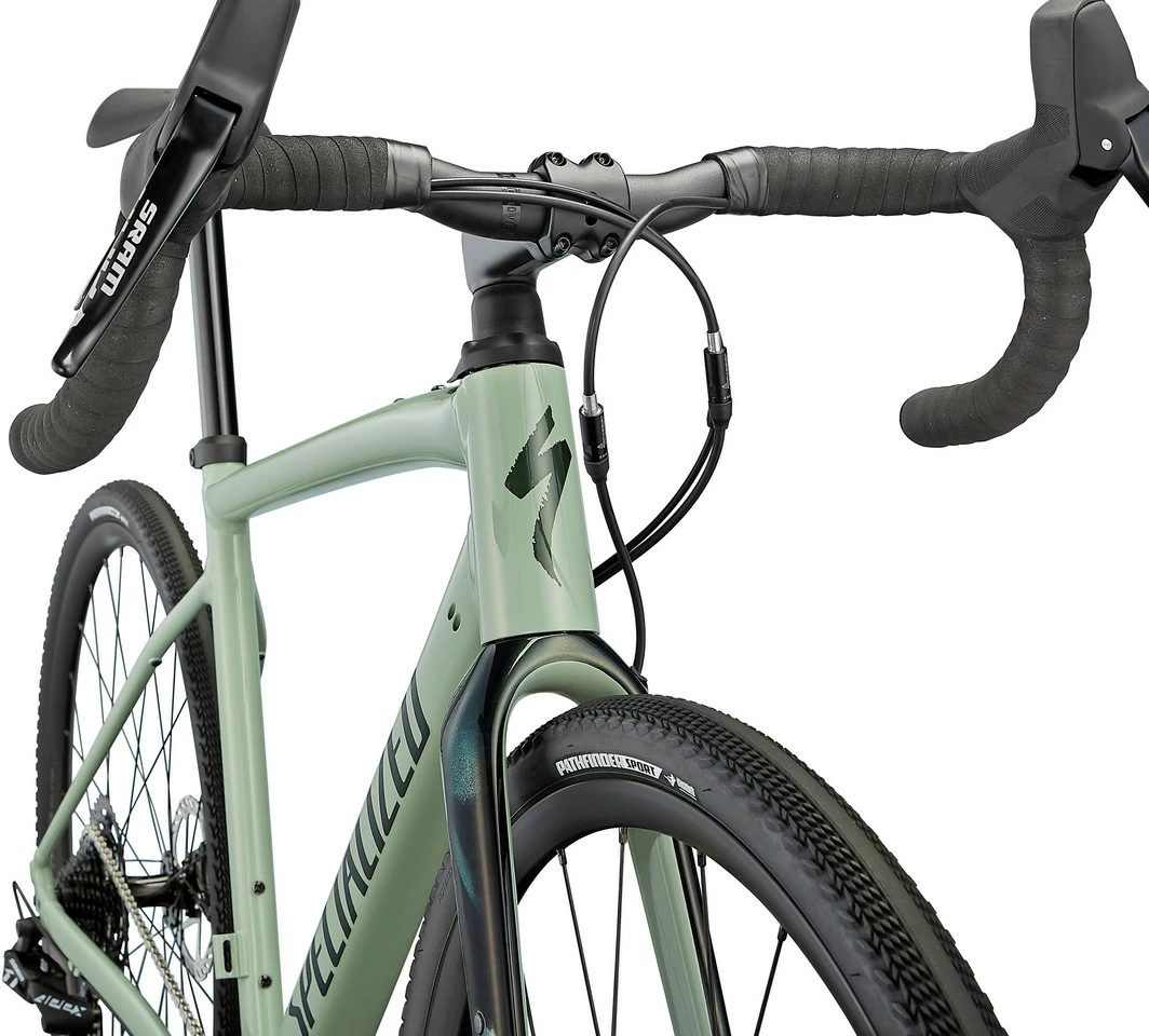Spezifikationen:Einsatzbereich:GravelLaufradgröße:28″Größen:52 cm, 54 cm, 56 cm, 58 cm, 61 cmMaterial Rahmen:Aluminium (E5)Material Gabel:CarbonKomponenten:Rahmen:Specialized Diverge E5 Premium-Aluminium, Future-Shock-Federung, Disc Flat Mount, 12 x 142 mmGabel:Future Shock 1.5, FACT™-Carbon, Disc Flat Mount, 390 mm Einbaulänge, 55 mm Vorlauf, 12 x 100 mmVorbau:Specialized Future CompLenker:Specialized Adventure Gear Hover, 103 mm Drop, 70 mm Reach, 12° FlareSteuersatz:S192500009 (Roubaix 2020, IS)Sattelstütze:Aluminium, 27,2 mm, 12 mm Setback, 2-Schrauben-Klemmung, AntikorrosionshardwareSattel:Specialized Body Geometry Power Sport, StahlstrebenKurbel:Praxis Works Alba, Praxis Works 68 mm BSA Innenlager, 40 Z KettenblattPedale:ohneBremsen:SRAM Apex, hydraulische Scheibenbremse, 160 mm/160 mm G2 Centerline RotorSchalt-/Bremshebel:SRAM Apex, hydraulischSchaltwerk:SRAM Apex 1, langer Käfig, 11-fachKassette:SunRace, 11-fach, Alu-Spider, 11-42 ZKette:KMC X11 Extra Lightweight, 11-fachLaufräder:AXIS Elite DiscReifen:Specialized Pathfinder Sport, 700 x 38CFreigaben:Gewichtsbeschränkung:125 kg (Fahrer + Gepäck)Bremsscheibengröße max.:160 mmReifengröße max.:700 x 47C, 27,5″ x 2,1″Kettenblattanzahl:1-fach, 2-fachFeatures:für Gravel optimierte Geometrieagiles und vielseitiges BikeFuture-Shock-1.5-System für mehr KomfortSmooth-Boot-Design für sauberen Übergang vom Steuerrohr zum VorbauVertrauen und Fahrstabilität in unwegsamem Geländedynamische Lenkung dank kürzerem Vorbaugrößtmögliche Reifenfreiheitmit 700C und 27,5″ (650B) Laufrädern fahrbarVielzahl an Montagepunkten für Flaschenhalter und Tascheninterne KabelführungSpecialized S-Wrap LenkerbandAluminium-Sattelklemme, 30,8 mm700 x 28-38 mm Schläuche, 48 mm SV-VentilTechnologien:FACT™