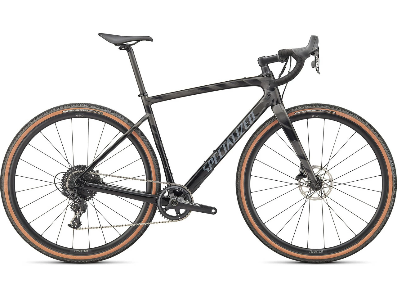 Spezifikationen:Einsatzbereich:GravelLaufradgröße:28″Größen:44 cm, 49 cm, 52 cm, 54 cm, 56 cm, 58 cm, 61 cmMaterial Rahmen:Carbon (8r)Material Gabel:CarbonKomponenten:Rahmen:Specialized Diverge Carbon, FACT™ 8r Carbon, Future-Shock-Federung, Disc Flat Mount, 12 x 142 mmGabel:Future Shock 1.5, FACT-Carbon, Disc Flat Mount, 389 mm Einbaulänge, 55 mm Vorlauf, 12 x 100 mmVorbau:Specialized Future CompLenker:Specialized Adventure Gear Hover, 103 mm Drop, 70 mm Reach, 12° FlareSteuersatz:S192500009 (Roubaix 2020, IS)Sattelstütze:Specialized, Carbon, 27,2 mm, Single BoltSattel:Specialized Body Geometry Power Sport, StahlstrebenKurbel:SRAM Apex 1, SRAM GXP Innenlager, 40 Z KettenblattPedale:ohneBremsen:SRAM Apex, hydraulische Scheibenbremse, 160 mm/160 mm G2 Centerline RotorSchalt-/Bremshebel:SRAM Apex, hydraulischSchaltwerk:SRAM Apex 1, langer Käfig, 11-fachKassette:SunRace, 11-fach, Alu-Spider, 11-42 ZKette:KMC X11 Extra Lightweight, 11-fachLaufräder:DT Swiss G540 Felgen, 24 mm Maulweite, Tubeless Ready, 24/24 Loch + Specialized Steckachsnaben Disc Center Lock, komplett gedichtet + DT Swiss Champion 14 G Edelstahlspeichen + DT Swiss MessingnippelReifen:Specialized Pathfinder Pro, 2Bliss Ready, transparente Seitenwand, 700C x 42 mmFreigaben:Gewichtsbeschränkung:109 kg (Fahrer + Gepäck)Bremsscheibengröße max.:160 mmReifengröße max.:700 x 47C, 27,5″ x 2,1″Kettenblattanzahl:1-fach, 2-fachFeatures:für Gravel optimierte GeometrieFuture-Shock-1.5-System für mehr KomfortSmooth-Boot-Design für sauberen Übergang vom Steuerrohr zum VorbauVertrauen und Fahrstabilität in unwegsamem Geländedynamische Lenkung dank kürzerem Vorbaugrößtmögliche Reifenfreiheitmit 700C und 27,5″ (650B) Laufrädern fahrbarVielzahl an Montagepunkten für Flaschenhalter und Tascheninterne KabelführungSpecialized Roubaix S-Wrap LenkerbandAluminium-Sattelklemme, 30,8 mm700 x 28-38 mm Schläuche, 48 mm SV-VentilTechnologien:FACT™