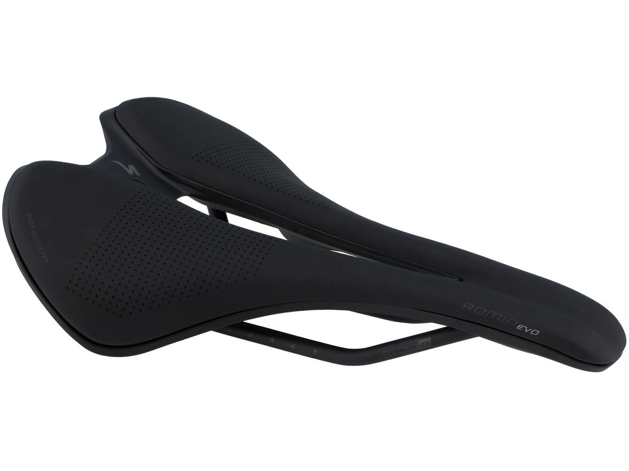 Der Specialized Romin EVO Expert ist ein schmal zulaufender Sattel mit leichtem Titan-Gestell, der für eine sportliche, windschnittige Sitzhaltung konzipiert wurde. Dabei sorgen das durchblutungsfördernde Body Geometry Design mit langgezogener Aussparung und Geleinlagen dafür, dass auch der Komfort nicht zu kurz kommt. Die Polsterung aus mittelfestem PU-Schaumstoff ist so gewählt, dass sich eine optimale Balance zwischen Dämpfung und Feedback ergibt, die langstreckentauglich ist. Das wasserabweisende Micromatrix™-Obermaterial steht genauso für Langlebigkeit wie die carbonfaserverstärkte Sattelschale. Dort befinden sich zwei Gewinde, die das Anbringen von Specialized SWAT™-Zubehör erlauben.