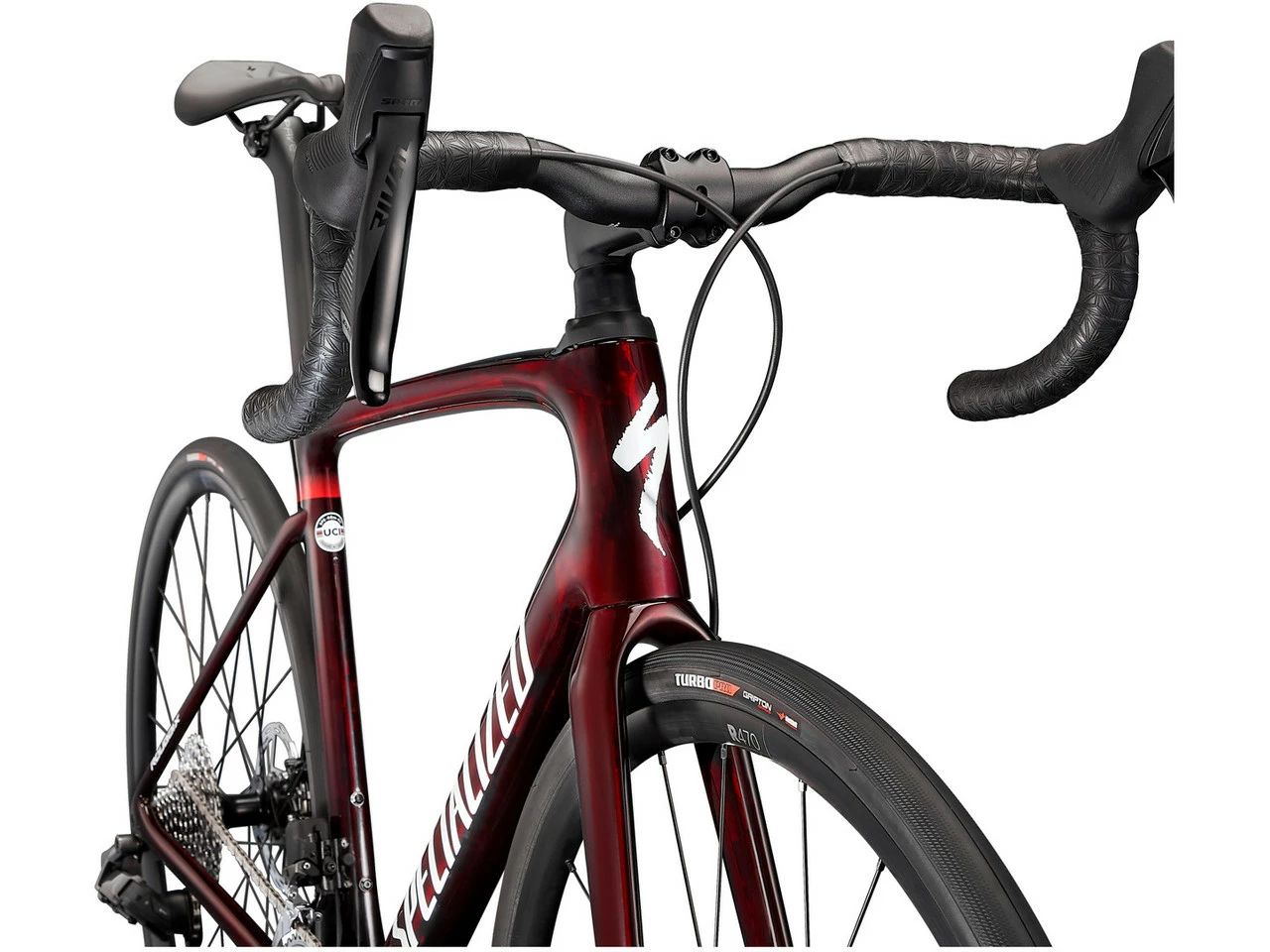 Spezifikationen:Einsatzbereich:RoadLaufradgröße:28″Größen:49 cm, 52 cm, 54 cm, 56 cm, 58 cm, 61 cmMaterial Rahmen:Carbon (10r)Material Gabel:CarbonKomponenten:Rahmen:Specialized Roubaix, FACT™-Carbon, Disc Flat Mount, 12 x 142 mm SteckachseGabel:Specialized Roubaix, Future Shock 2.0, Disc Flat Mount, 370 mm Einbaulänge, 12 x 100 mm SteckachseVorbau:Specialized Future ProLenker:Specialized Hover Comp, Aluminium, 125 mm Drop, 75 mm ReachSteuersatz:S192500009 (Roubaix 2020, IS)Sattelstütze:Specialized S-Works Pavé, Hidden Drop ClampSattel:Specialized Body Geometry Power CompKurbel:SRAM Rival, 48-35 Z, SRAM DUB BSA InnenlagerPedale:ohneBremsen:SRAM Rival, hydraulische ScheibenbremseSchalt-/Bremshebel:SRAM Rival eTap AXSSchaltwerk:SRAM Rival eTap AXS, 12-fachUmwerfer:SRAM Rival eTap AXS, AnlötKassette:SRAM Rival XG-1250, 12-fach, 10-36 ZKette:SRAM Rival, 12-fachLaufräder:DT Swiss R470, 20 mm Maulweite, Tubeless Ready, 24 Loch + Specialized Disc Center Lock Steckachsnaben, vollständig gedichtet, Aluminium-Freilauf + DT Swiss Champion 14 G Edelstahl-Speichen + DT Swiss MessingnippelReifen:Specialized Turbo Pro, 700 x 28 mmFreigaben:Gewichtsbeschränkung:109 kg (Fahrer + Gepäck)Bremsscheibengröße max.:160 mmReifengröße max.:33-622 (700x33C)Kettenblattanzahl:2-fachFeatures:kompromisslose Nachgiebigkeit auf rauen Untergründen wie Kopfsteinpflasteraerodynamisch und extrem leistungsfähigFuture Shock 2.0 System für mehr KomfortSmooth-Boot-Design für sauberen Übergang vom Steuerrohr zum Vorbauzusätzlicher Flex dank spezieller Sattelstützegeringes Gesamtgewichtgroßzügige ReifenfreiheitSchläuche mit 48 mm SV-VentilSupacaz Super Sticky Kush LenkerbandTechnologien:FACT™