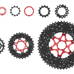 Spezifikationen:Einsatzbereich:Cross Country, All Mountain, EnduroSchaltstufen:11-fachAbstufungen:11-51Material Ritzel:Stahl / Aluminium (7075)Freilaufkompatibilität:Shimano MTBTechnische Daten:Serie:MXSpider / Ritzelträger:2 (Aluminium)Features:Wide-Ratio-Kassette für den ambitionierten Mountainbike-EinsatzRitzel 1 bis 9 aus Stahl, Ritzel 10 und 11 aus eloxiertem Aluminiumakkurate und zuverlässige SchaltvorgängePerforierungen zur GewichtseinsparungSpider, Spacer und Verschlussring rot eloxiertAusführungen:11-51:
