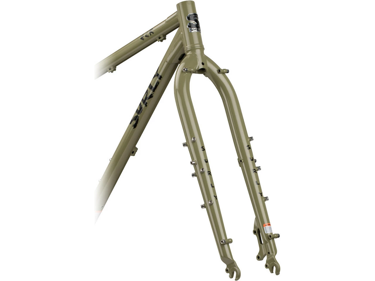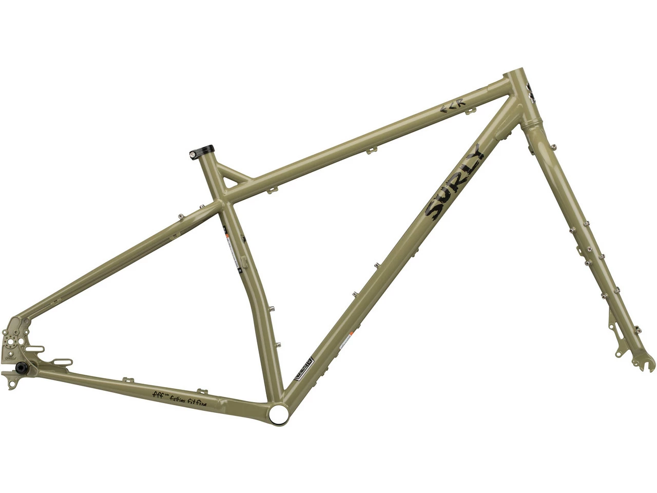 Spezifikationen:Einsatzbereich:Touring/Trekking, Cross CountryLaufradgröße:29+Rahmengrößen:M, L, XLMaterial Rahmen:Stahl (4130 CrMo)Material Gabel:Stahl (4130 CrMo)Technische Daten:Einbaubreite Hinterrad:142 mm, 148 mm (Gnot Boost)Achsstandard:12 mm SteckachseSattelstütze (Ø):27,2 mmSattelklemme (Ø):30,0 mmSteuersatz:EC34/28,6 – EC34/30Gabelschaft empf.:1 1/8″Gabeleinbauhöhe:468 mmInnenlagerstandard:BSAGehäusebreite:73 mmBremsaufnahme:Disc ISUmwerferaufnahme:Low Clamp (Schelle 28,6 mm), Direct Mount (High-Direct)Flaschenhalteraufnahmen:3Zubehöraufnahmen:Ösen für Gepäckträger und SchutzblecheTechnische Daten Gabel:Gabelschaft:1 1/8″Achssystem:Schnellspanner (9 x 100 mm)Bremsaufnahme:Disc ISVorlauf:47 mmSchaftlänge:260 mmEinbauhöhe:468 mmEinbaubreite:100 mmGabelkronendurchmesser:30 mmMaterial Gabelschaft:Stahl (4130 CrMo)Material Gabelbeine:Stahl (4130 CrMo)Zubehöraufnahmen:Ösen für GepäckträgerFreigaben:Gewichtsbeschränkung:138 kg (Fahrer und Gepäck)Scheibenbremsgröße max.:203 mm (VR), 160 mm (HR)Reifengröße max.:3,0″ (mit Schutzblechen)Kettenblattanzahl:3-fach, 2-fach, 1-fachKettenblattgröße max.:3-fach 22-34-44Z, 2-fach 26-39Z, 1-fach 34Z (Mitte), 44Z (außen)Gabeleinbaulänge max.:485 mm (Starrgabeln), 527 mm (Federgabeln)Features:WIG-geschweißt, ED-beschichtetdoppelt konifiziertes HauptdreieckSurly Trip Guide Zug-/Leitungsführungenhorizontale Ausfallenden (mit Rohloff Aufnahme)zwei normale und eine 3-Ösen-Flaschenhalteraufnahme3-fach nur möglich mit 2,5″ oder schmaleren ReifenASTM-Kategorie 3Technologie:Gnot Boost: