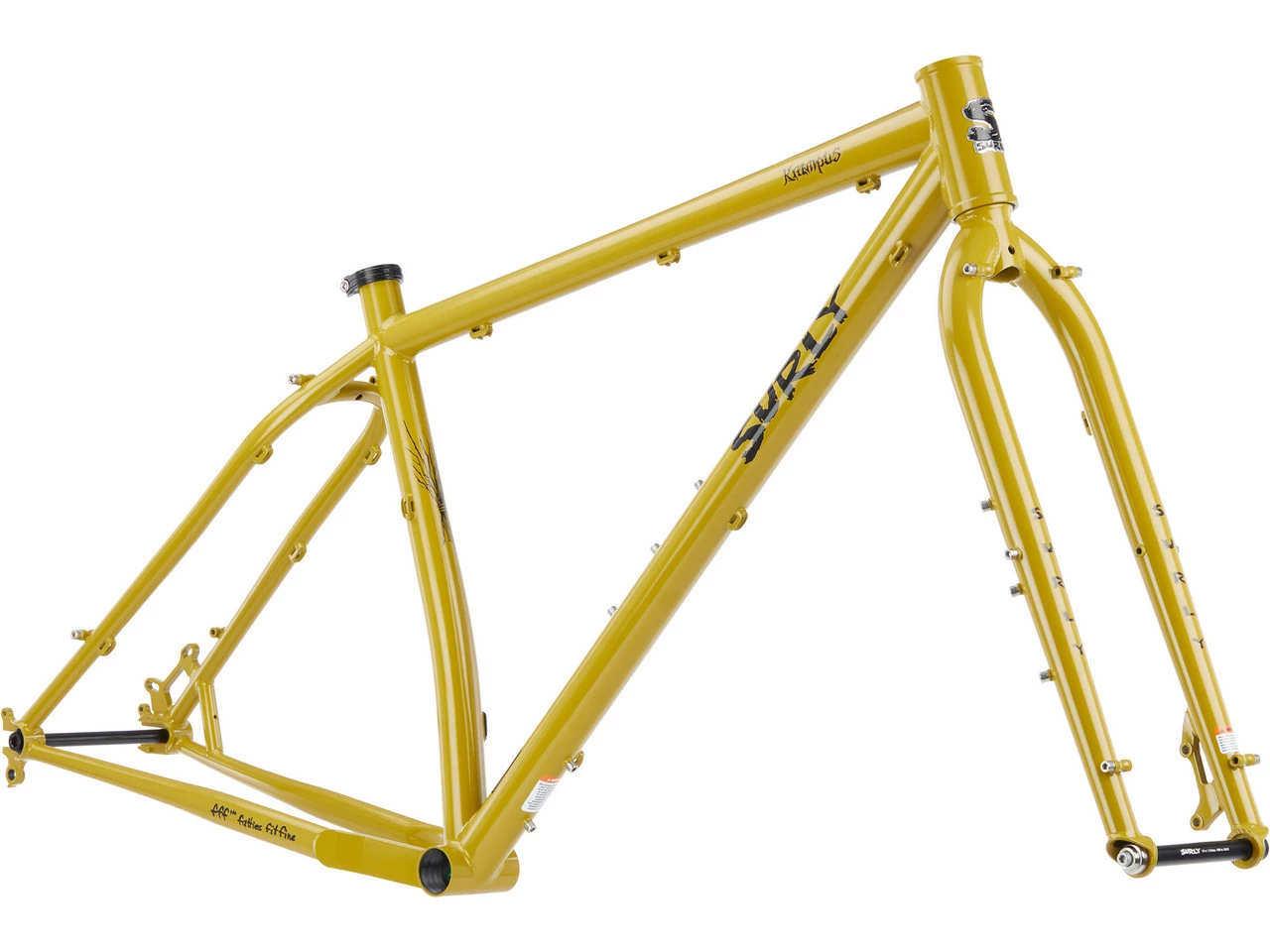 Spezifikationen:Einsatzbereich:Trail, Cross CountryLaufradgröße:29+Rahmengrößen:S, M, L, XLMaterial:Stahl (Surly 4130 CrMo)Technische Daten:Einbaubreite Hinterrad:142 mm, 148 mm (Gnot Boost)Achsstandard:12 mm SteckachseSattelstütze (Ø):30,9 mmSattelklemme (Ø):33,1 mmSteuersatz:ZS44/28,6-EC44/30Gabelschaft empf.:1 1/8″Gabeleinbauhöhe:483 mmGabelfederweg empf.:120 mmInnenlagerstandard:BSAGehäusebreite:73 mmBremsaufnahme:Disc ISUmwerferaufnahme:Direct Mount (High-Direct)Flaschenhalteraufnahmen:2Zubehöraufnahmen:Ösen für Gepäckträger und Schutzbleche, Variostützen-LeitungführungTechnische Daten Gabel:Gabelschaft:1 1/8″Achssystem:Steckachse (15 x 110 mm)Bremsaufnahme:Disc ISVorlauf:47 mmEinbauhöhe:483 mmEinbaubreite:110 mm (Boost)Gabelkronendurchmesser:30 mmMaterial Gabelschaft:StahlMaterial Gabelbeine:StahlZubehöraufnahmen:Flaschenhalteraufnahmen, Ösen für Gepäckträger und SchutzblecheFreigaben:Gewichtsbeschränkung:136 kg Fahrergewicht, 2,3 kg Zuladung, 138 kg GesamtgewichtBremsscheibengröße max.:203 mm (VR), 180 mm (HR)Reifengröße max.:3,0″Kettenblattanzahl:2-fach, 1-fachKettenblattgröße max.:2-fach 24-36 Z Boost, 1-fach 30 Z BoostGabeleinbaulänge max.:483 mm (bei Starrgabeln), 550 mm (bei Federgabeln)Features:WIG-geschweißt, ED-beschichtetdoppelt konifiziertes Hauptdreieckhorizontale und vertikal geschlitzte AusfallendenKabelführungen für VariostützenASTM-Kategorie 3
