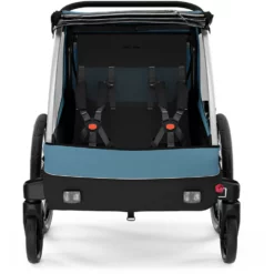 Der Thule Courier Kinderanhänger ist ein wahres Multitalent und daher optimal für aktive Familien geeignet. Der Fahrradanhänger bietet Platz für zwei Kids, lässt sich aber auch problemlos zum Buggy umwandeln. Auch der Transport des Wocheneinkaufs ist ein Kinderspiel. Du hast einen Vierbeiner? Kein Problem – das Multitalent ist auch in einen Hundeanhänger umwandelbar.